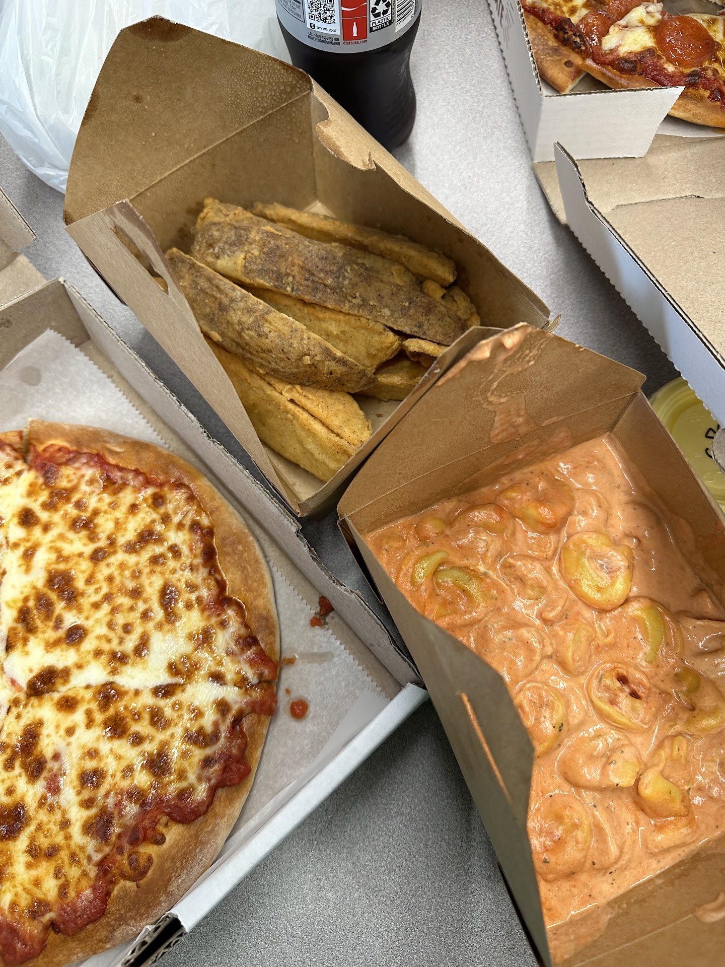 They have a sweet tomato sauce that’s really good. The pizza has a nice fluffy yet semi-thin crust and the ratio of cheese to sauce was great! The pasta was my favorite thing! I got cheese tortellini with the Rosa sauce—IT WAS SO GOOD! The amount of food I got was awesome! The pasta will last me 2-3 meals for sure. The jo Jo’s were piping hot and fluffy on the inside!