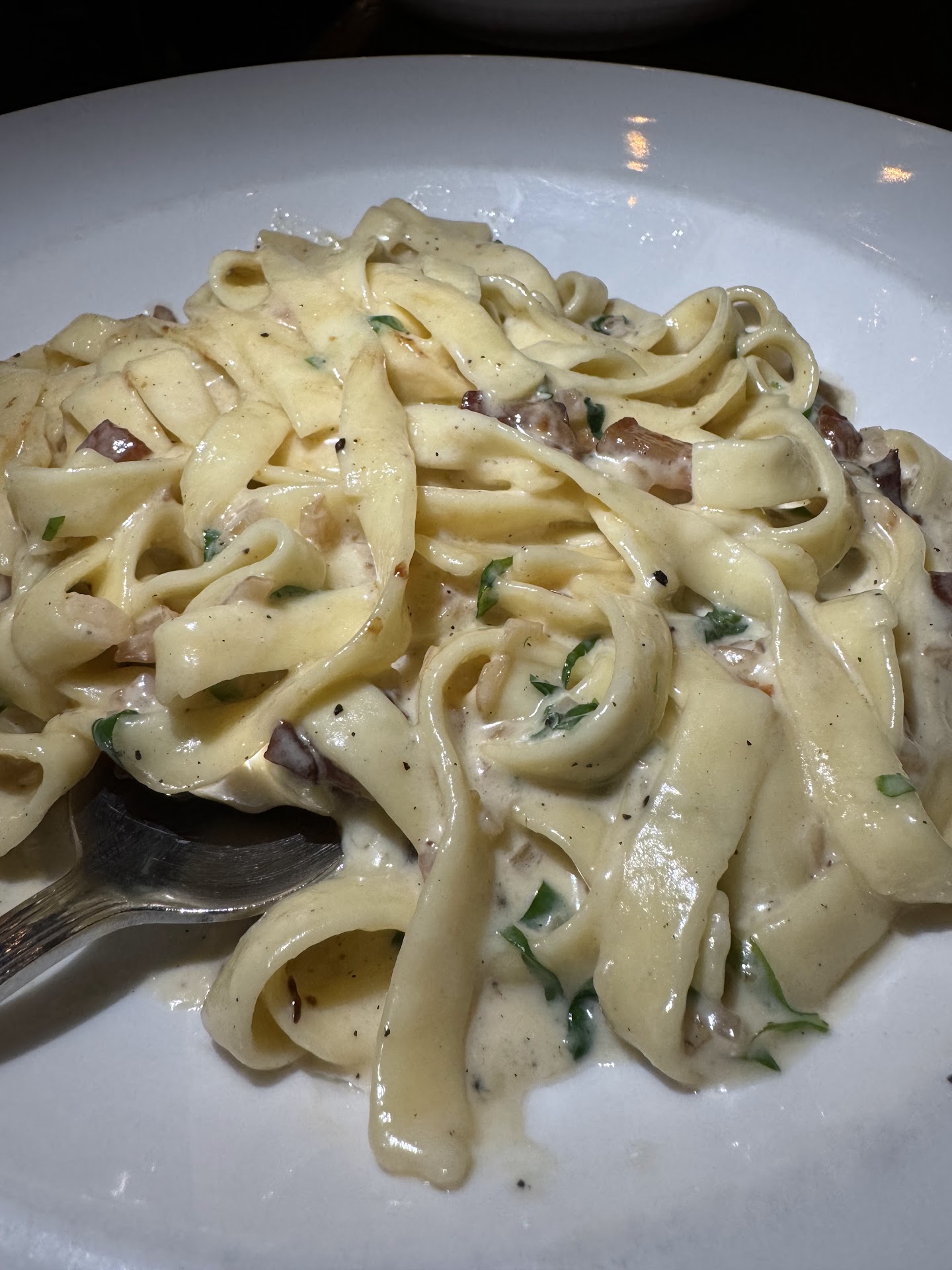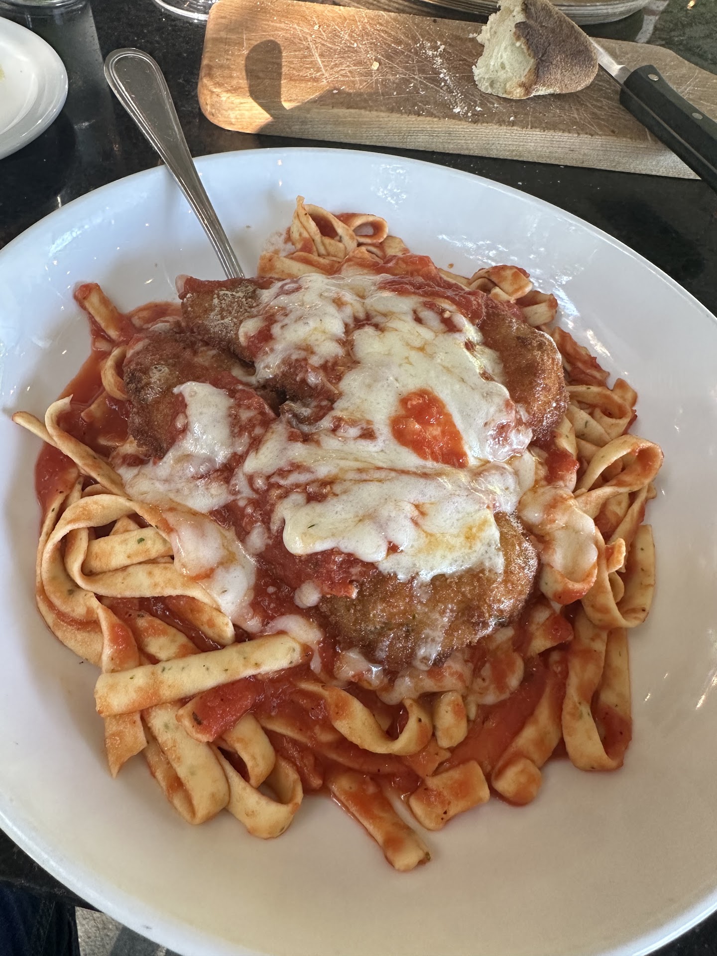 Read moreI really wanted to like this place. Made a reservation several weeks in advance after not being able to get in the year before. Waited 5 minutes at the host(ess) area before being acknowledged. The host who turned out to be our waiter finally came over and pointed us in the direction of our table (next to another table covered in dirty dishes). To his credit the waiter/host was slammed - not sure if they were down a worker - but his running around the restaurant didn’t make for a relaxing atmosphere. Each interaction was curt and he wound up upselling us on “fresh pasta” (+$8) and an Asiago roll (+$5) because we were grateful that he finally came over to our table and we felt rushed. The eggplant rolatini app was excellent. The shrimp scampi mediocre and the pizza was lukewarm and soggy when it made it to us. The grated cheese dispenser brought to our table was nearly empty and no one asked us how our meal was while we were eating. Not sure if it was an off night, but it sadly didn’t live up to our...