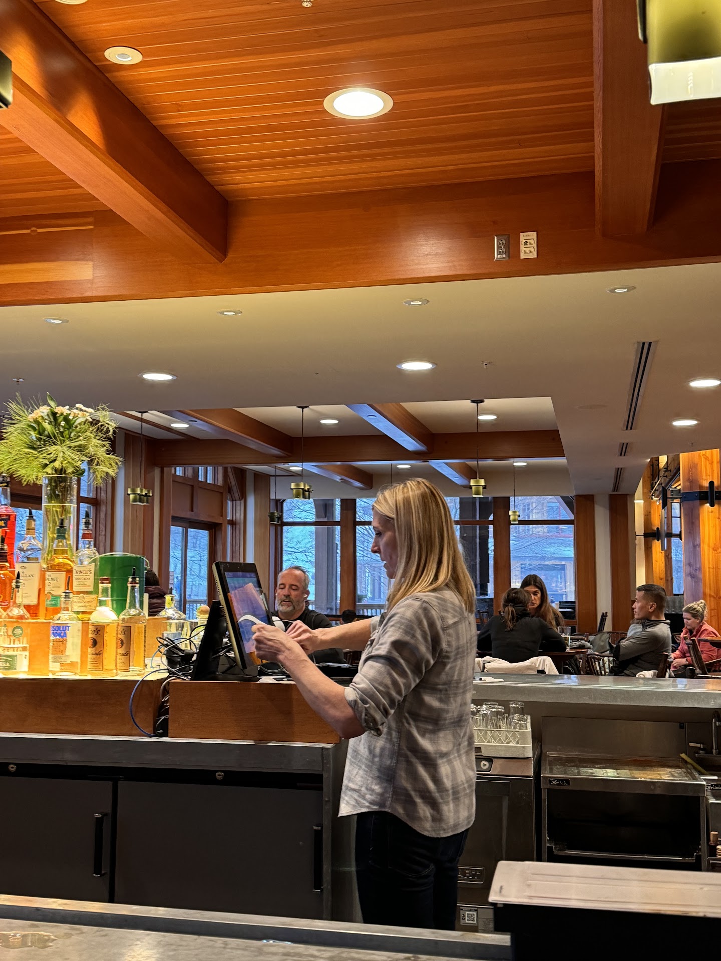Good place overall to get cafeteria style food with different food sections. Food is priced as you'd expect next to the mountain. Not as expensive as the restaurant next door but pretty close. There is a separate decent bar area to hang out at as well. The space is very large and there are good views all around. The staff is friendly enough and the food is hot and good. You can sit up here without getting food but you're not allowed to bring in outside...