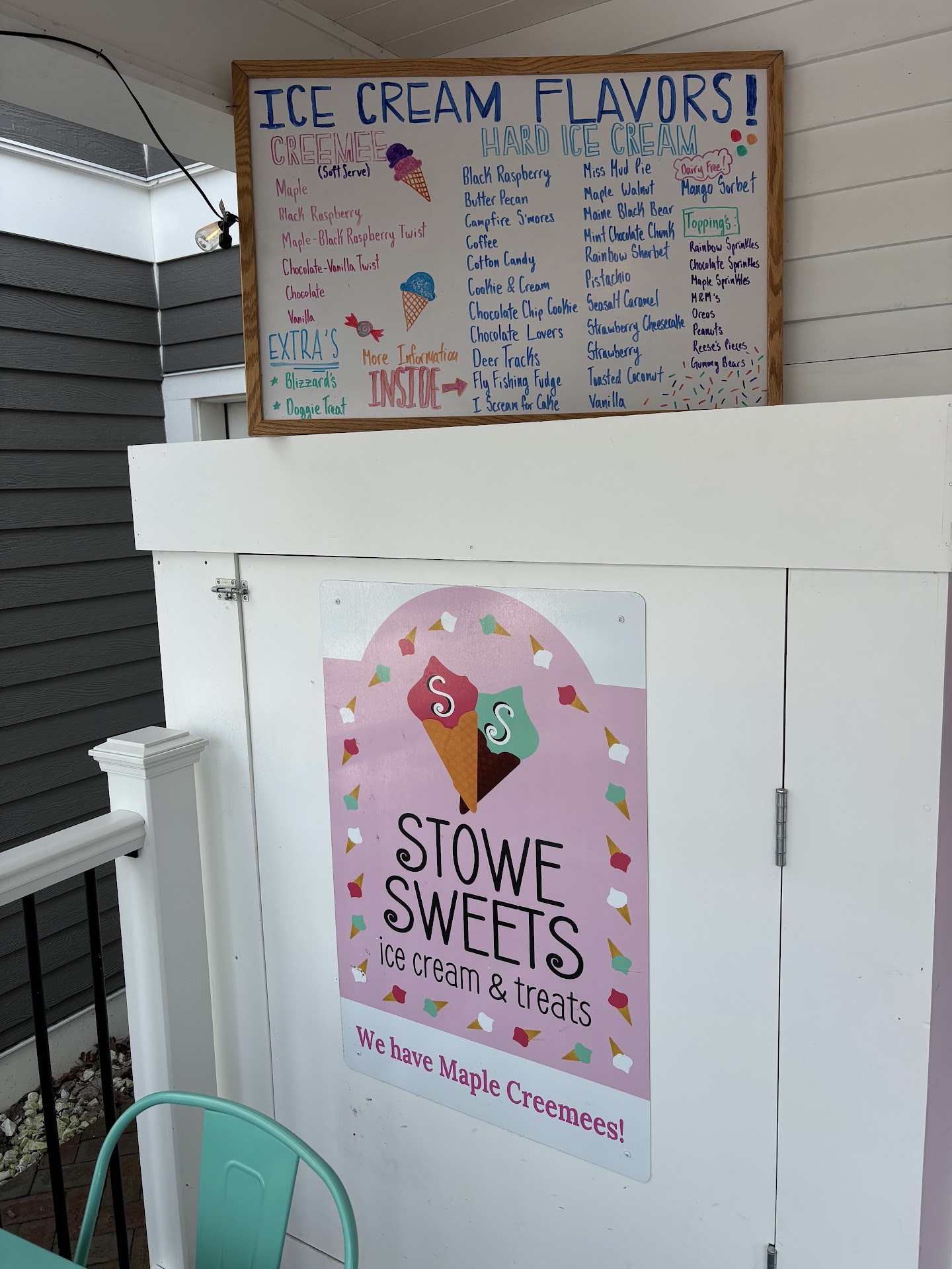 Read moreMy family was in search for a sweet ending to our day in Stowe and found just the spot at Stowe Sweets! Easily accessible from the main road, they have endless flavors available for cone or dish treats, including small portions for your puppy! Choose hard ice cream or get a creemee then load on the toppings (especially for a flurry). Quick and friendly service too! Check out their ice cream sandwiches, drinks and...