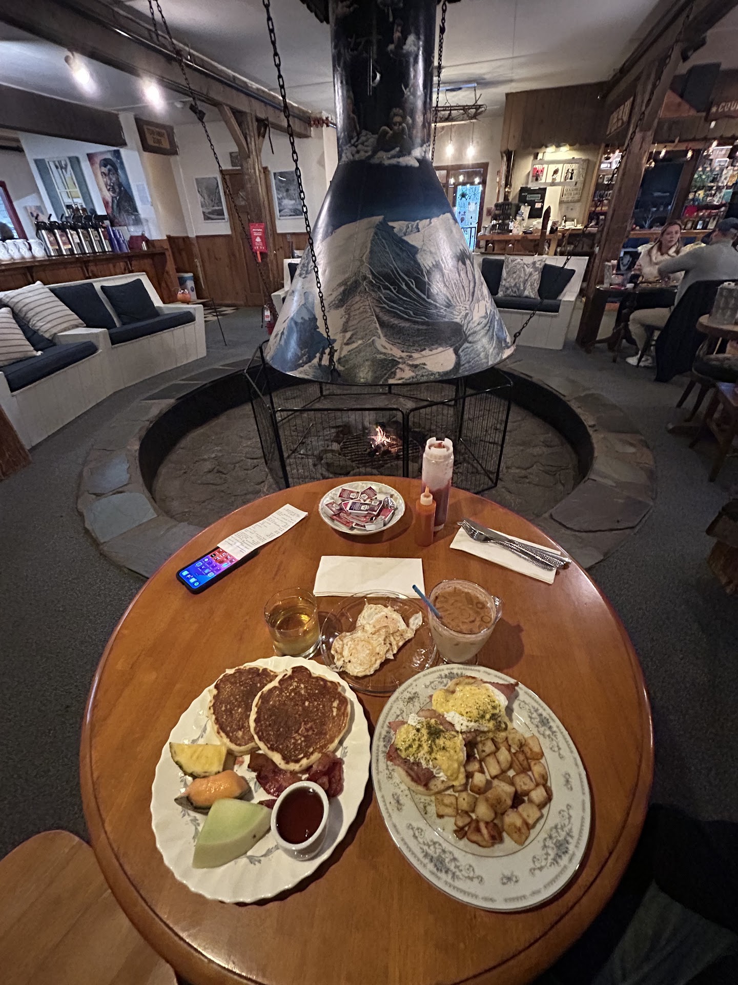 Read moreWhat a unique and super cool place in the heart of Stowe, VT! My family and I were staying close by and The Round Hearth Cafe quickly became the staple of our trip. We did every morning here whether it was just a quick iced coffee to go or an early lunch sitting out on their patio. The folks working there were wonderful! Kind and courteous - going out of their way to ensure happiness. I had iced coffee each day while my kids had lattes and hibiscus iced tea. The breakfast sandwiches came on huge slices of sourdough bread and were perfectly buttered and crispy. Please check out the video I attached to see the amazing outdoor seating. Couple of notes: parking is fine - just find a few spots on the roadway out of the way if all the slots are taken. This is a serve yourself location, meaning you order and pay in one location and then wait with a buzzer until your food is ready. The wait was completely acceptable and not long at all. It seemed perfectly timed for food that was being cooked and not sitting under a hot lamp. The inside of the restaurant has plenty of seating around the massive round hearth. A trip in the winter is absolutely called for as we missed out on the cool fireplace that seemed to be ripped from the past! Additionally, there are cool little stands within the restaurant where you can browse local goods and gifts. Tons of local flavor with maple and more. I witnessed a rather nasty customer demand to know where their food was - and since I was sitting there watching could tell that the people in front of him ordered easy meals like heated up muffins and bread - but that didn't bother the manager on duty. He immediately addressed the concern and expedited the gentleman's order. Again, that level of service demands attention as the manager could've simply provided context around the order in front of the complaining man, but instead he chose to provide a level of customer service not always seen in the industry any longer. Wonderful breakfast and lunch staple in Stowe that you need to check out now!