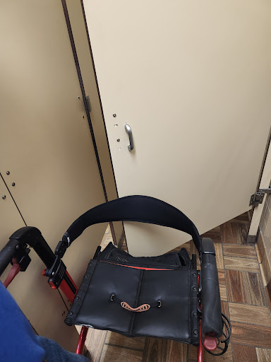 The next issue came when washing and drying my hands. The soap dispensers are right next to the sinks and faucets which is where they should be. However, the paper towels are on the opposite wall from the sink. So, I had to push my Rollator with my wet hands over to the paper towel dispensers. The higher up of the two dispensers was out of paper towels and I had to stoop down while trying to balance myself holding my role later and using the paper towel dispenser that was only 3 ft...