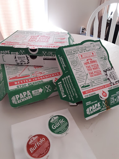 Read moreLast time we ordered extra sauces and extra peppers we didnt get them and we were charged for them. I called in to the manager an she said she couldn't give my money back and that we didnt order extra stuff. She wasn't pleasant I was angry. But now when we order we make sure we just dont buy extra stuff it's not worth not knowing if we will get it. It's a shame we love papa John's. But management needs help. And they need to check their orders properly before delivery. The pizza never seems to be consistent either one day it wasn't cooked then another time we ordered it was overly cooked. I...