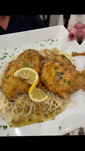 My wife and I have been wanting to try this B.Y.O. place for a few months now and finally got here. What a great looking local spot. Plenty of tables with white table cloths and black cloth napkins, high arched ceilings (that unfortunately really bounced the noise volume up from a larger table of customers but not a deal breaker) Frank Sinatra and similar artists play through the built in wall speakers. Our server never gave us her name but she was very attentive, fun, friendly and informative. The menu is extensive and should offer something for everyone. We started with Calamari and Stuffed Mushrooms. Both were very good. We especially enjoyed the red sauce that came with the calamari. Before the apps came, we were presented with a basket of toasted, garlic buttered bread with red sauce and a big bowl of sliced, grilled green peppers in red sauce. Wow was that delicious! We even took the leftover green peppers and red sauce home for omelettes the next morning. For the entrees my wife got the Penne alla Vodka and added shrimp and I tried the 14 oz. Aged Ribeye steak. Both came with soup or salad and we both chose soup. āPasta e fagioliā and I kid you not⦠it was the best Pasta e Fagioli Iāve ever had! My wife enjoyed her pasta very much and the added shrimp were large and perfectly cooked. My Ribeye steak was perfectly cooked to medium rare with a beautiful char and delicious seasoning on it. It was presented sliced on a sizzling hot skillet plate with cubed potatoes and a side of steak sauce. At this point we were so full we couldnāt possibly do coffee or desserts but our waitress sent us home with two complimentary mini cannolis ājust becauseā. We thoroughly enjoyed ourselves here and truly cannot wait...