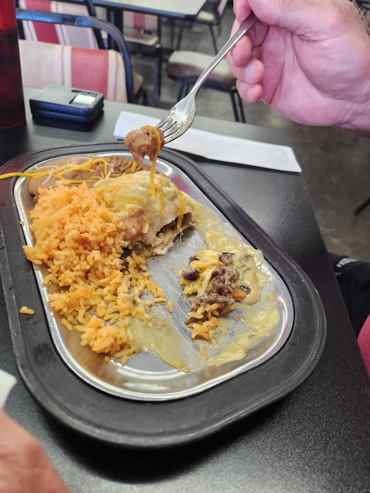 Warmly welcomed even 10 minutes before they closed for the day. We have had 2 full days of driving and really wanted a good meal from a local establishment. We knew our drive time was going to be close to the cut off from the posted hours, and really had NO back up plan. Great customer service, friendly and conversational, great item digestion for my husband's choice "smothered asada burrito" with their green sauce. I enjoyed their daily special of club sandwich ( with crinkle fries, my favorite ), the jalapeño ranch was great too! We ate quickly, as we didn't want to cause too much delay for their closing. Obviously a local favorite in town, we now concur. We will be sure to plan our traveling time better on our return trip to enjoy another meal! Muchas...