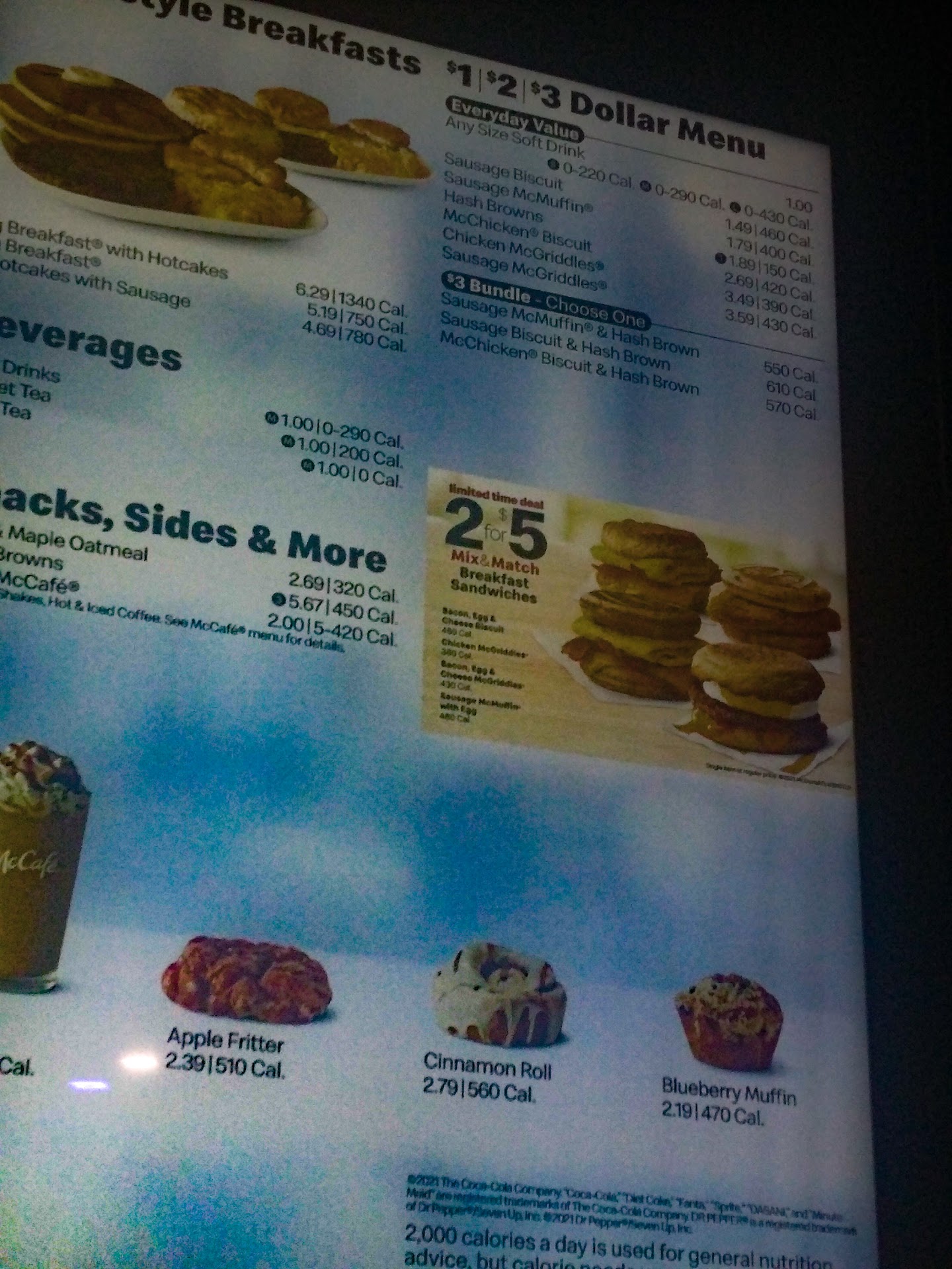 Read moreZero star service :::BEWARE::: FALSE ADVERTISING! And/or blatant incompetence! I ordered a $3 breakfast bundle saying just that along with some other things and was told OK last window. After reading my receipt wondering why it was so much after seeing the price of my coffee, I pulled back up to the window to be told "oh that just stopped today" by the girl who took my order! The guy there shouldn't be allowed to speak to customers. He hands over food well enough, can even take money and he sure does know where to point to the stores personal complaint number but god forbid he opens his mouth. Rude and crude because nothing is his problem, he pointed to the number after all. Maybe when I ordered a $3 special that would have been the time for the girl to mention its no longer available. Even then... Corporate complaint line opens Monday morning. I feel bad for all the customers being misled, charged almost double for something clearly advertised for $3. Wouldn't it be funny when I just go to give the chicken biscuit and hash brown to my dog at 6:15 and I realize the girl who took my order have me a chicken mc griddle clearly not what I ordered... Clearly not a bundle... not something I would buy for my dog like a biscuit? It be funny if the bundles are still available, just with an extra side...