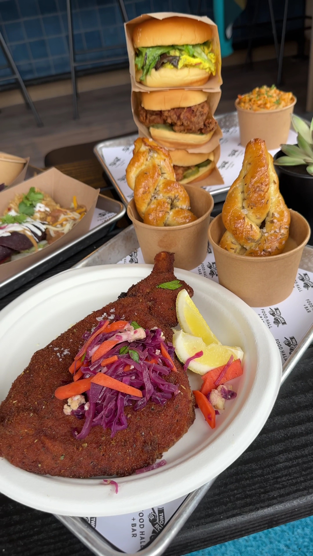 Read moreFood, vibe, service, and drinks all top notch! Our servers were super friendly and we got to try some of the new food items, all of which were fire 🔥 - the “not-zarella” sticks, Roads-e-o burger, and chipotle chicken wrap were all amazing. They had this salt and vinegar aioli with the fries that tasted just like salt and vinegar chips that was mind blowing. I had the Old Fashioned and the “Spaghett About It” cocktails while my wife had the “Mango Tango” slushie with mango, passionfruit, and their own vodka all of which were some of the best cocktails in the area hands down! Loved enjoying the nice weather on their patio, playing some cornhole, and getting to play on the vintage pinball machines with my daughter. Super kid friendly atmosphere which is always nice and was great getting to experience Two Roads with the family while still getting that restaurant expereince....
