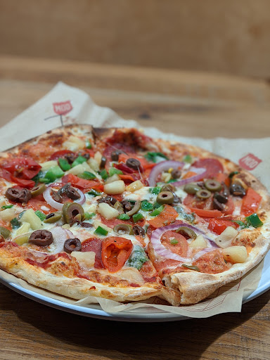 Read moreThe restaurant is a knockoff of Blaze Pizza which didn't do well here in Colorado. Not sure why because Blaze is superior to mod. There were only three people working which made the line going in rather slow. Not as many toppings as there is at Blaze but unless you've been to Blaze, you wouldn't notice and it wouldn't be that big of a deal. The dough is pretty thin and when I asked them to top it with olive oil, he looked confused and kind of bothered.