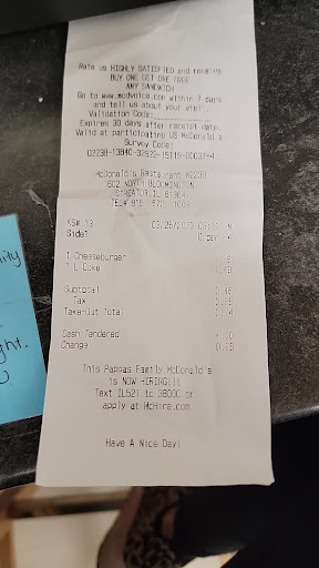 Read moreThis place is garbage. Yesterday, 10/5, I placed my order a 01:05pm. I ordered a 4 and 6 piece happy meal and a double cheeseburger and fries for my wife. I was not given a recipe for the order from the kiosk. The order was placed at 01:05pm. At 01:25pm, I had to approach the cashier and express that I had been there an unreasonable amount of time and still had not gotten the food. Keep in mind, SEVERAL PEOPLE had came in, ordered and received their food, many orders larger than mine, and left all in the time I was waiting for the food. After I explained to the cashier my issue, my food ironically was ready after 20 minutes. This service was unacceptable should be addressed by the cooperate office. But I know it will not. I don’t eat this dog food as it is, and this incident made my case even...
