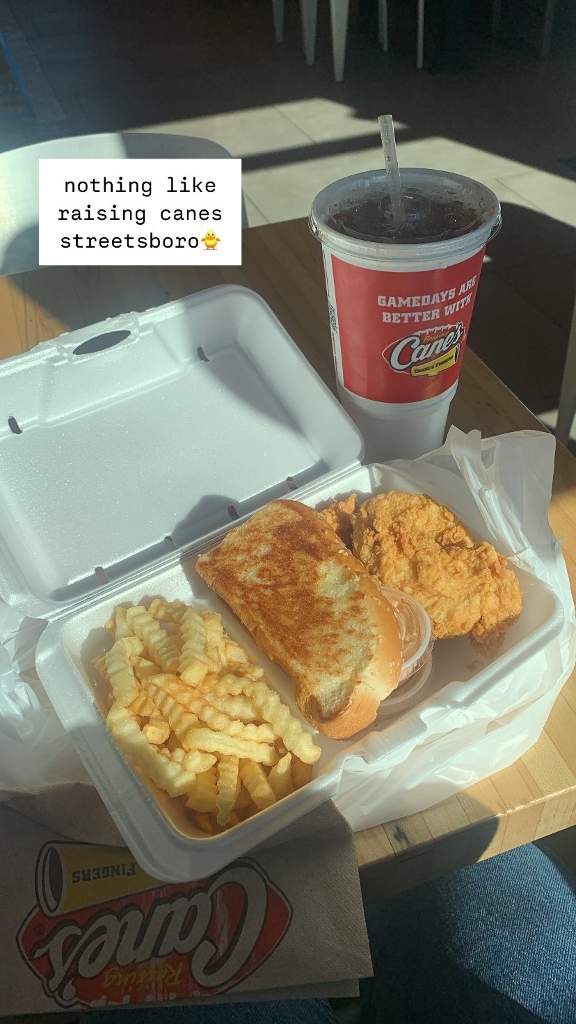 This is the best Raising Canes in NE OH! Always FAST, FRIENDLY, PERSONABLE and ENERGETIC service! The food is fantastic , always giving fresh, crispy, hot fries and chicken. The fries are perfectly salted and the chicken is always approved by me! The toast tastes amazing especially when dipped in the sauce with a piece of chicken with it. Coleslaw isn’t my thing but when my friends have gotten it, they’re satisfied with the flavor and the amount given. The atmosphere inside is very cleanly where you eat and the restrooms are very nice as well. I’ve been in both the dining area and the drive thru to get food and every time it’s been flawless. (at this location…) Make sure you order an extra canes sauce and if coleslaw isn’t your thing and get some extra toast instead! (Just a...
