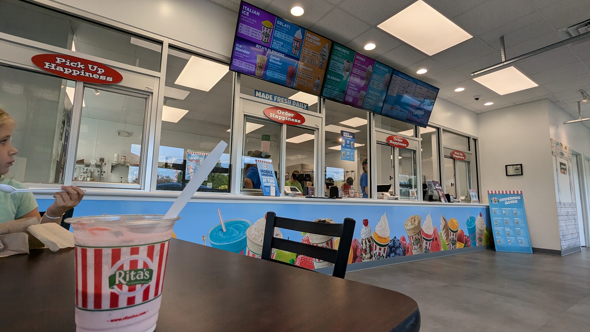 Read moreSo excited to see a Rita's close by. I haven't had their frozen custard in several years & just had to stop by for one. Specialty flavor was cheesecake & wow is it delicious. I added some chocolate custard too. It reminded me of the one we used to have in North Lima & how our dogs loved to have a few bites of custard when we took them along for the ride with us. Our little Paczki (Schnoodle) one time couldn't resist & just dug his face right into my sundae as if the entire bowl was just for him. We laughed & laughed it was so funny. That Rita's custard must of smelled heavenly to him & he wasn't waiting for an invitation to eat. lol--I agree, Rita's frozen custard is a delicious treat anytime...