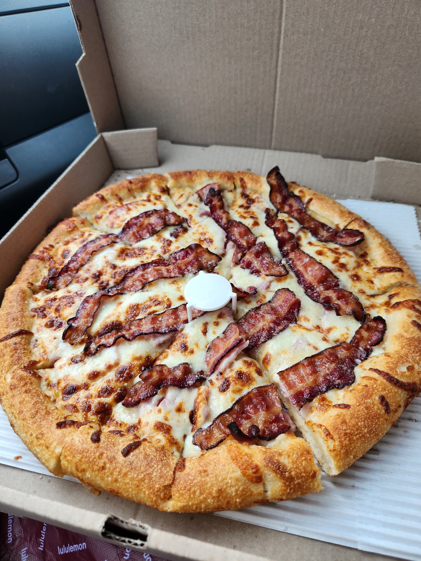 Read more5/11/24 After reading many reviews and looking through the pics online, I decided to give A Slice Above a shot. The pizza I received was a large honey bee pizza with regular crust. I opened the box and full strips of crispy bacon greeted my gaze. It has ham slices and what seems like a cheese sauce with hints of honey that are just perfect for this pie. The honey gives a subtle sweetness that does go with the ham and bacon. The crust was light and not tough or chewy. The pizza I got was $19 and I would pay that again as the quality was worth it. I look forward to trying the other specialty pizzas they have to offer such as the bacon cheeseburger pizza and the twister!