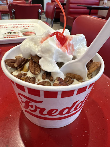Read moreThis was my first visit to this location. I used to go to the Streetsboro location when it first opened, but hadn’t tried this one yet. To be honest, I was a little leery seeing maybe two cars in the parking lot and no customers inside, but I was hungry so went in anyway. So glad I did! I was immediately greeted by a staff member at the register who then waited patiently while I decided what to order. While waiting on food, I remarked to an employee who had just finished cleaning the restroom that it was my friend’s first time at Freddy’s. She, Renee, the manager, said we picked a good night to come because she had come up from Cincinnati to reform service and standards at this location. (Ok, now I’m extra leery. How bad was this place that they had to bring someone up from Cincinnati to fix it?) I mentioned visiting the Streetsboro location and she mentioned two employees in the kitchen were from there, and two others were brand new hires. Everyone waved and said hi, etc. I was pleasantly surprised when we got our food and it looked and smelled amazing. I had ordered a #1, double cheeseburger with added tomato and lettuce (free add-ons at this restaurant, unlike other chains). To anyone complaining about the “flat” burgers, Freddy’s serves smash burgers, which aren’t thick like regular ones. Mine was nicely seasoned, with lettuce/tomato/pickle that were cold, as they should be, while the burger was hot off the flat top. Fries were lightly salted and piping hot as well. Everything looked appetizing, and tasted better! All was much better than McDonald’s or Burger King, and well worth the purchase price. Music was at a reasonable volume, and while we could hear the kitchen staff (as the only people in the dining room), no one was being obnoxious or overly loud. The restaurant was clean and smelled pleasant, no odor of smoke or old fryer oil. In fact, the whole time we were there, something was being cleaned or restocked. Renee even came by the table to make sure everything was to our liking, something I appreciated. We later overheard her talking to staff, basically an “end of shift briefing”, thanking them for coming in and working hard, especially those who had made the drive from Streetsboro. I won’t share everything she said, but I will say that this is someone I would be happy to work for, and whose exhibited management style exceeds that of most people I have worked for before. I will definitely come back again! Thank you to Renee and tonight’s staff for a fantastic late...