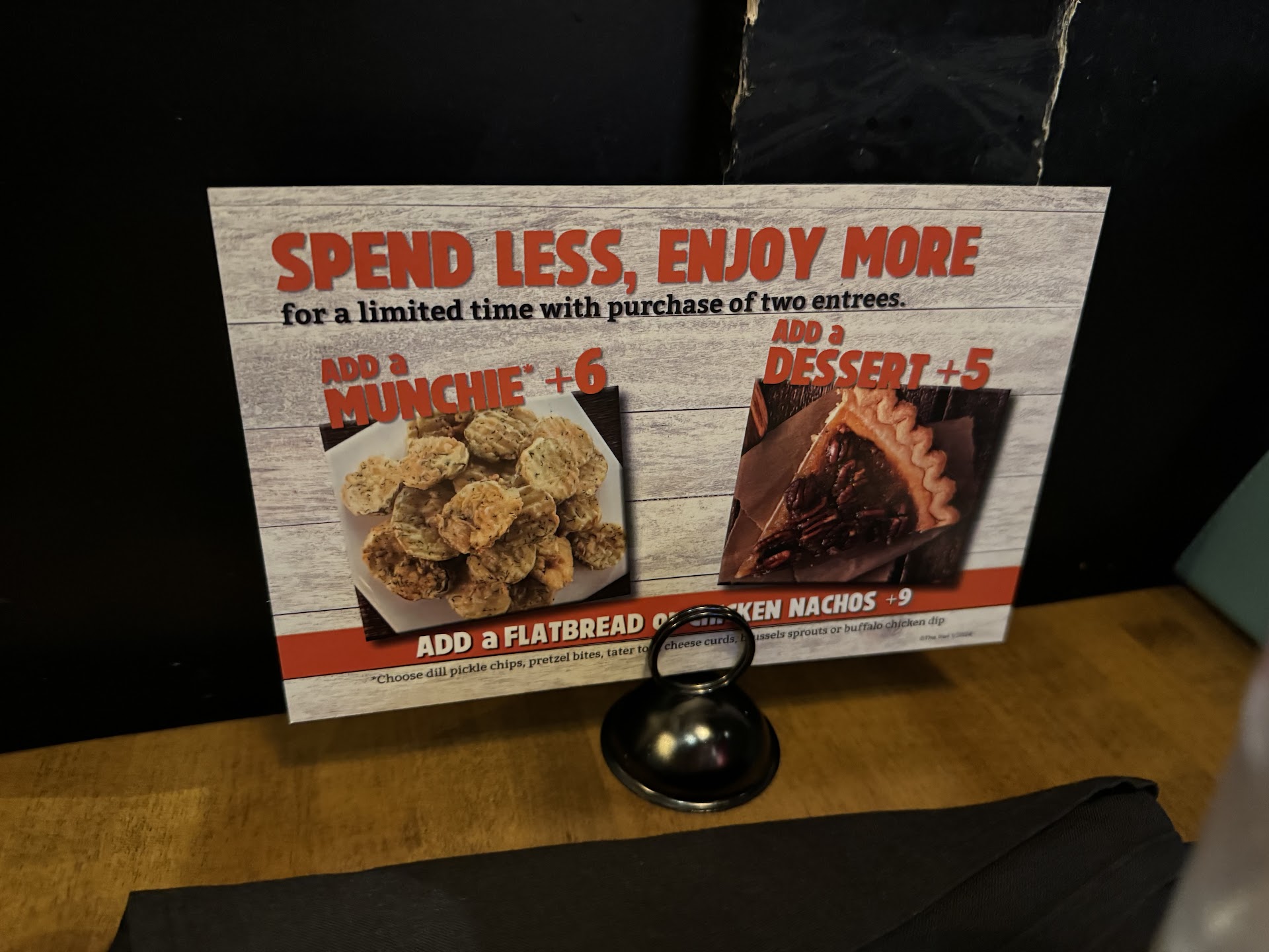 The fried pickles were heated up they were limp and soggy, barely any topping on them at all, I mean there was barely any breading whatsoever on them it was awful. The chicken dip was terrible it tasted like it had been in the refrigerator with the wrapping open, it was awful. I will be honest, I will never go back there after this experience. I would not recommend.