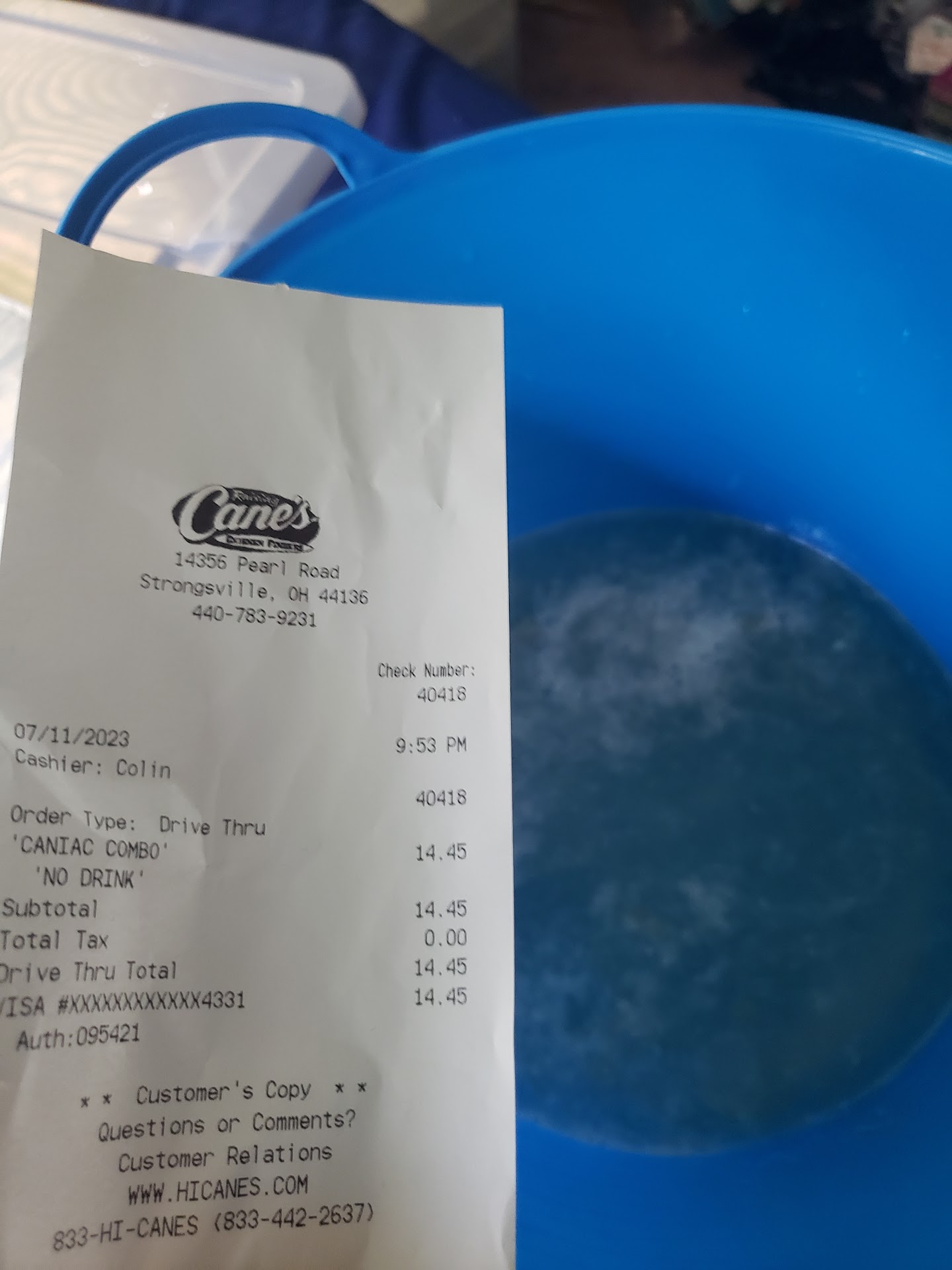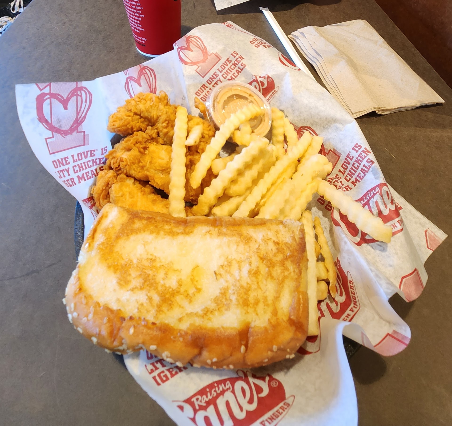 Conclusion: My meal cost 12.29 and I got dry chicken with paint thinner coleslaw. However the fries, lemonade, and texas toast were all good. Still not worth 12.29. Popeyes easily has better chicken tenders. I even feel that Steak and Shake has better chicken tenders and at a better value. I'm giving three stars for the service and the food items I enjoyed. You could do a lot better for a lot cheaper at other restaurants. Sadly I wont be coming back to Canes unless I am in the area and am in need of a...