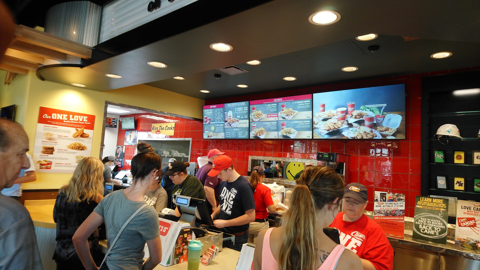 Service: The line was pretty long. Not Chick Fil A long but still pretty long. This got my hopes up because that means we should be getting fresh food and I would say for the most part that is what we did indeed get. Also the employees were very nice and the service was fast.