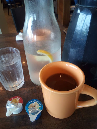 Read more*Potatoes chunks must be kept in a warmer and not cooked fresh- they were very chewy and tough, almost inedible. Hash browns came out lukewarm and mushy in the middle. Paid 1.99 extra to have the potato chunks and hash browns "loaded" (cheese, sour cream, chives) and the cheese wasn't even melted. *The Oatmeal Cinnamon Pancakes are supposed to be topped with almonds, pecans, and cranberries; I ordered 3 pancakes and received 2 dried cranberries, 2 almond slices, and 1/2 a pecan sprinkled pitifully on top. The pancakes themselves had some raw oats and cinnamon thrown on top. *The Spicy Chicken and Waffles came with a sad amount of chicken, probably about 1 1/4 chicken fingers. To be fair the chicken itself was cooked well and crispy it just wasn't nearly enough for the price. One half of the waffle just had straight Sriracha on it (not good) and the other half had a Sriracha maple syrup blend. *The water tasted vaguely like Sierra mist. It was sad. *We only ate a little over 1/2 our food. The server gave us our check, when I began to express our dissatisfaction I assured them that even though we were dissatisfied with our food we would not dock their tip. They got short with me and cut me off, asking if I just wanted them to take the orders of potatoes off the check. We said yeah sure why not. They brought back our card and spoke to us very rudely. *We will not be going back. The food was sad and not worth the $30 they tried...