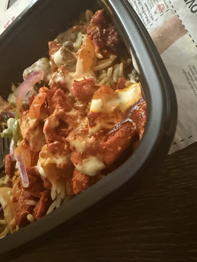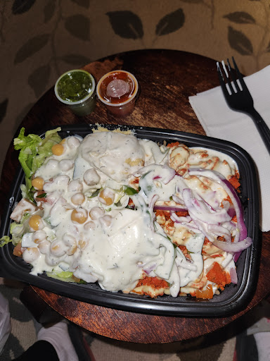 Their rice was dry, therefore tasteless, despite of lots of cumin in it. The chicken was OK, but nothing impressive. The lamb is a joke, or let me say it better, trash. it is the typical frozen gyro cone that is served at all similar restaurants. They just cook it on flat grill, not on a rotating spit grill. They call it lamb, and they say 'contains beef' in parenthesis. Then why do you call it Lamb then, instead of Lamb & Beef? Why don't you also say that it is full with bread crumbs? Why don't you say that this is the cheapest junk version of lamb? They cook it on flat grill and keep it in trays over steam. The lamb they served to us was dry and tasteless. They offer something that they call 'hummus', which has nothing to do with authentic version of hummus. It is the most tasteless hummus-like paste. Their other toppings are very limited, which are lettuce, diced tomatoes, onion, cucumbers, etc...Nothing appetizing. The famous white sauce is just another version of mayo. You succeed it. We are not coming back again.