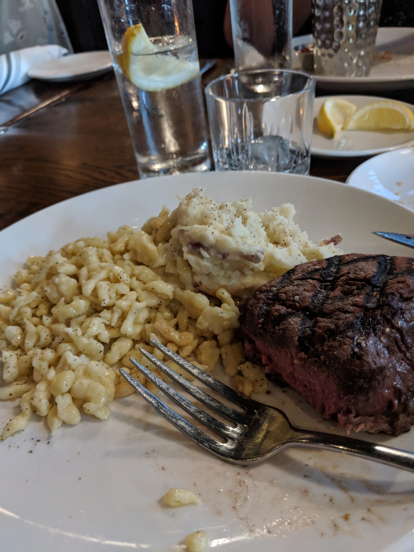 Ā Ā Ā Read moreI have been here and done reviews for here in the past, I recommended this to my family for a dinner as I have always had great service, great food and a very nice atmosphere. To start I will say this visit was not my normal experience with this establishment. I have been here maybe a couple dozen times and it's typically great. We got there and it was extremely loud (It's not exactly something they can truly control, I do understand this). Aside from that it was decently busy as it always is. We all ordered and got our food except one person with our party. Their window from the kitchen is small so I'm not sure if the kitchen was pressuring them to get the food out, but I believe you should never bring the food out when it's not complete. We ended up having our food for roughly 15 minutes before the last person's food came out. Our waiter had been great up until this point. I understand the kitchen was slacking however as a waiter you simply don't bring the food unless everyone's is ready. I can understand if it was being plated etc. But how long the wait ended up being was completely unacceptable. We were all pretty upset and the waiter did hold himself very well with receiving our feedback, but simply put the issue should have never happened. This was pretty upsetting especially since they seem to have also increased their prices a bit since the last time I was there (I admit it has been a little while). If they are going to have fine dinning prices, they need to have the service to match it and they simply fell short. The food was still good like it always has been for me. The waiter minus the single (somewhat big) mistake was great. The atmosphere all the other times was a little loud but It has never been so loud I couldn't hear people at my own table like it was this time. Overall very disappointed with the experience this time and I was embarrassed I had been the one to recommend it. Hopefully they talk to the kitchen about keeping tickets together and advise the waiters if the whole ticket isn't done you don't take it, even if that means making the kitchen remake the whole ticket. I hope they make some adjustments to...