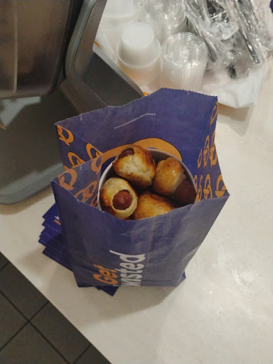 Went there this morning with my 2 year old and he wanted a pretzel dog that’s on there menu board the girl said that they don’t make them till noon now is considered a lunch item I asked her if she can make one for my son and she said she can get in trouble and loss her job really? What are you in business for to sell your products and make people happy or to threaten employees to loss there job is not like you have them made already in this location they make them when you order them so you still have to wait 10 minutes very disappointing,put on the menu board “NOT AVAILABLE TILL NOON “ Run a real business this is very unprofessional and th threaten your staff like that shame on you...
