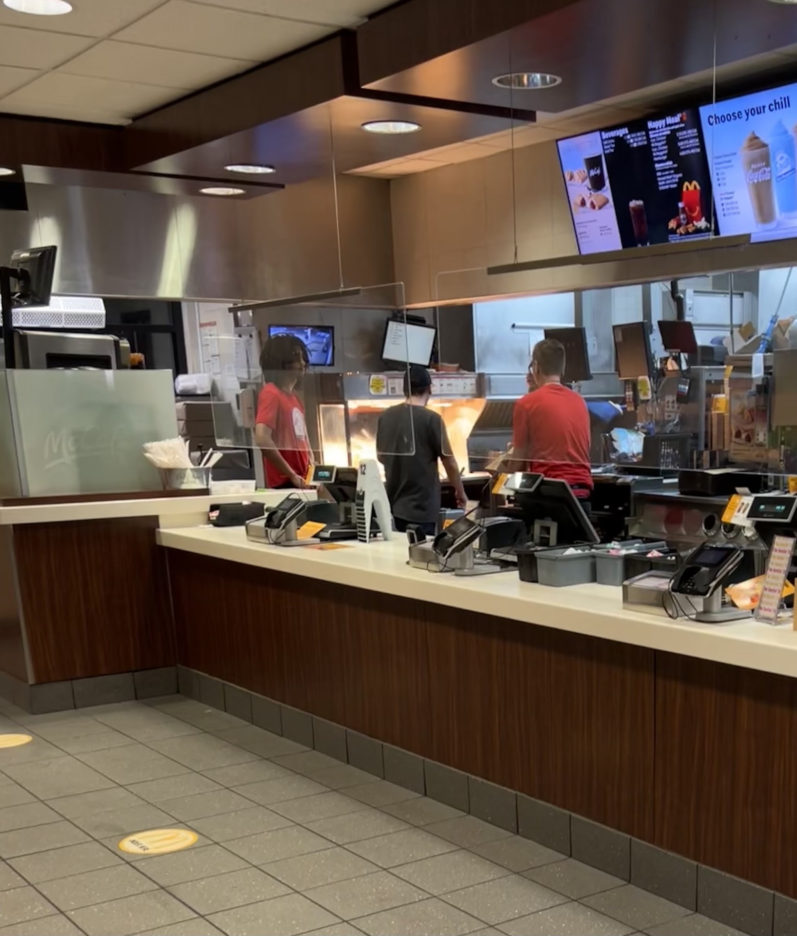 I ordered our food in the drive thru, then went to the service station to get a drink and ended up back at McDonald's because my McChicken was supposed to be light mayonnaise but when I opened the wrapper it was thrown together and mayonnaise all over the wrapper with my actual grill slip INSIDE my chicken sandwich. I went in there to get a new sandwich and was going well but then the manager (Branson) looked at my sandwich and grill slip and threw it away, when I said something to him, I said I also wanted a couple of drinks and he couldn't hear me because he needed to take his apple earbud out so he could hear, he then asked what again and I told him and he said someone will be with you and walked off, then the other manager (never got his name) but he couldn't hear me either because when I tried speaking with him he had to take his apple earbud out as well. Neither of them even said anything to me about my order. I was about to order 2 drinks but then I thought why should I spend 5.63 on 2 drinks when they just made my sandwich wrong and against health code (grill slip inside wrapper and sandwich) and asked to speak with a manager, the young lady went back there to ask and came back up to the front and nothing was said. I waited a bit and still nothing so I asked the young lady if he was coming and she said no, that he was busy making food, I was floored. I said really she said yup. When I asked them to go back and get him again he finally came up but his response was like what do you want instead of im sorry it took me a bit or anything. The two managers both made a scene and I ended up just throwing my food away and leaving. I've never in my life had such horrible service and flat refuse to stop by that...