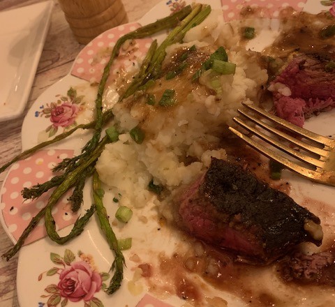 We ordered the fried cauliflower broccoli that was actually delicious. I ordered the shrimp and grits. It took forever to come out and when it came out, it was cold. I sent it back. When it came back and was finally came and was hot. The grits were runny and tasteless! Big bummer I was totally in the mood and the dish sounded delicious. They were not all like the description. My hubs Ordered a salmon Wellington. Which came out overdone. It has mashed potatoes and cold. The dish supposedly came with Roasted Brussels sprouts. But instead came with asparagus ((My husband hates). So he asked if he could get the sprouts. When they finally came out They were not roasted at all they were steamed and mushy. Gross.