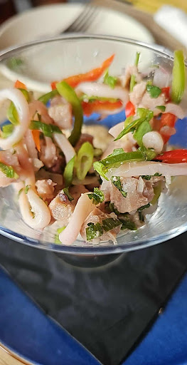 The seafood options were equally impressive. The ceviche was refreshing and vibrant, with tender seafood, bright peppers, and herbs that balanced citrus and spice beautifully. The fried calamari was cooked just right—crispy, golden, and not greasy—served with a tangy marinara sauce and lemon wedges for brightness.