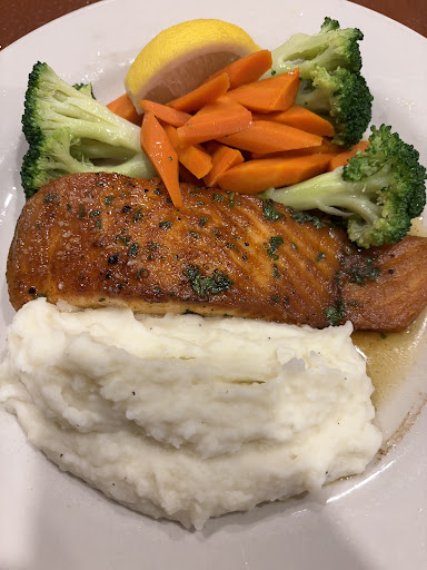 A dinner before the show. A large party was in the middle of their meal. 3 couples already seated with no food. We were promptly seated. Waiter took our order about 5 minutes later. He informed us it would be about 30 minutes for the meal to come. That would give us time to eat our meal and make the show in time. 30 minutes later, the other tables had their food. We still had not received water. 45 minutes later, there is still no food or drinks. The last table that had received food is now leaving. I had to chase the waiter down, who had been averting eye contact, to tell him to make our meals to go. 10 minutes later, we get our "to-go" meals. Thirsty and hungry, we had to leave the food in the car and head to the show. Our supper ended up being a Snickers bar, popcorn, and a soda. We did dig into the meal upon getting home. The food was delicious. Just wish we could have eaten it 3 1/2...
