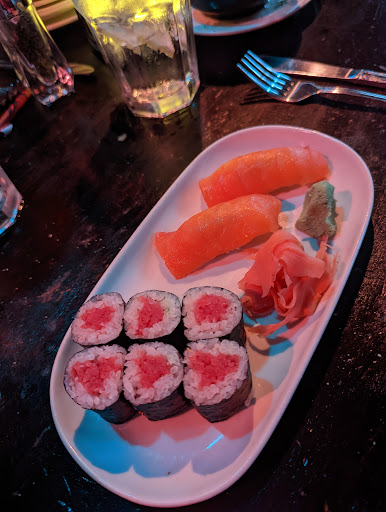 This place was a rollercoaster. We had 9 people, but I still feel like I'm being generous giving 3-stars. Everything started off great, our waiter was training someone and they got our waters out quickly. They brought out Miso Soup and edamame which was also great! It took about an hour from the time we received the miso soup and edamame to get our meals. Almost everyone loved their food! It was hot and fresh! My husband had a pesto chicken sandwich and it hardly had any meat in it. When they brought that out along with another sandwich, the waiter couldn't even tell the difference because all he could see was bread, so, he did the "obvious" thing and started to open the bread with his fingers on BOTH sandwiches so he could determine which was which. I thought that was extremely unprofessional and rude. Had they put more meat or toppings on it, maybe he wouldn't have had to touch them. I got sushi and never in my experience of having sushi have I ever had wasabi paste put on it to "hold it" together. It was horrible. I've had sushi from around the world and even in Japan they don't do this. If you don't like wasabi, I'm sure you can understand the disgust I had when I tasted it. The waiter was very nice about it and fixed it for me. The other issue I had is that while waiting for our food during that hour, nobody came to check on us to refill our drinks. When we first got there it was busy, but it was almost empty in our room before we got our food and we still couldn't even gain eye contact with anyone to help us get refills. Maybe this place is better with smaller groups, but I just didn't enjoy it as much as I...