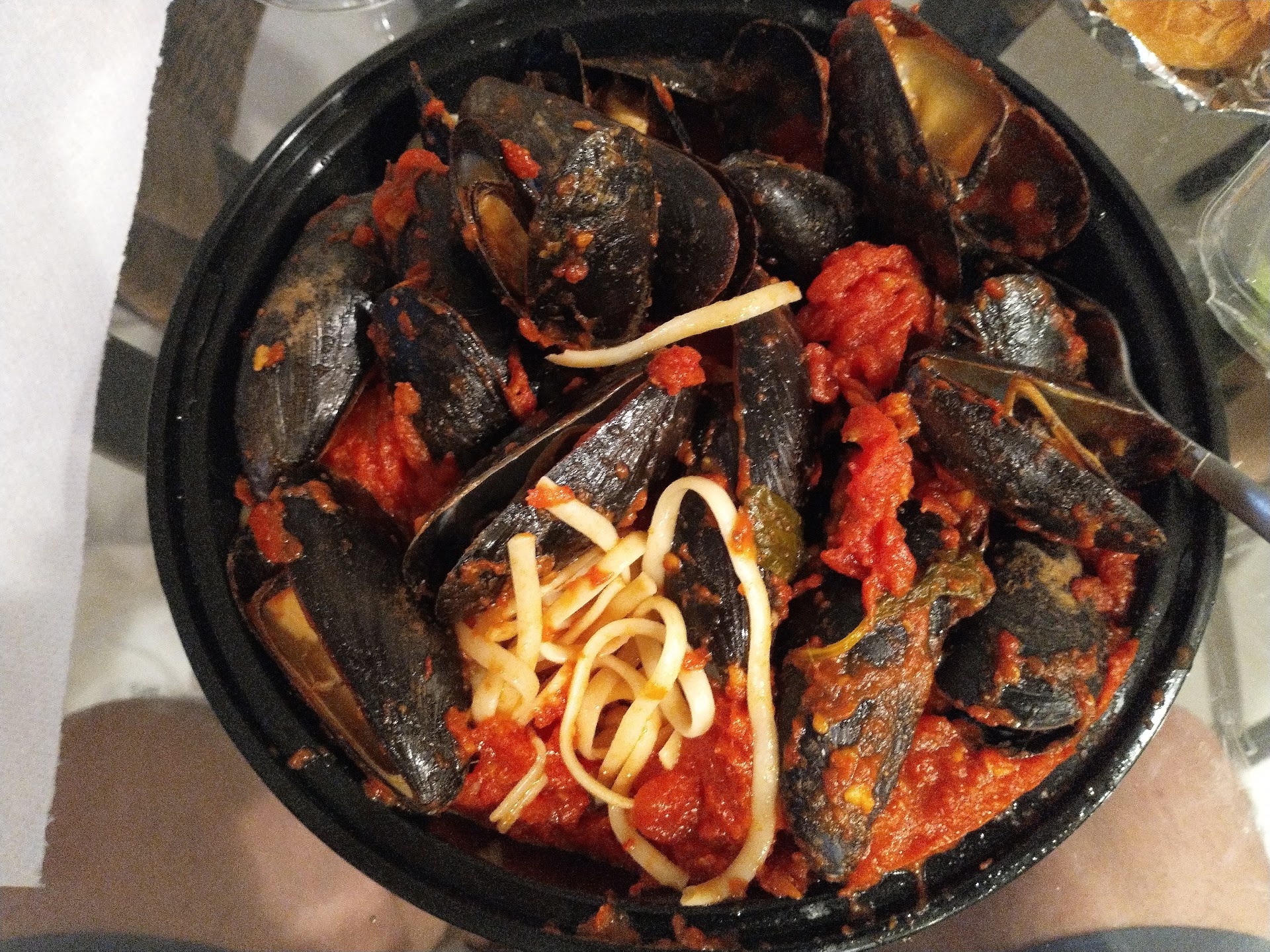 The pasta was cooked fine but, and here is the best part they actually dumped at least a cup of water or maybe tomato watery sauce on each dinner.. literally a bowl of watered sauce...then they proceeded to place the burnt garlic rolls right into the watery sauce, at least that helped to soak up a 1/4 cup of watery sauce.