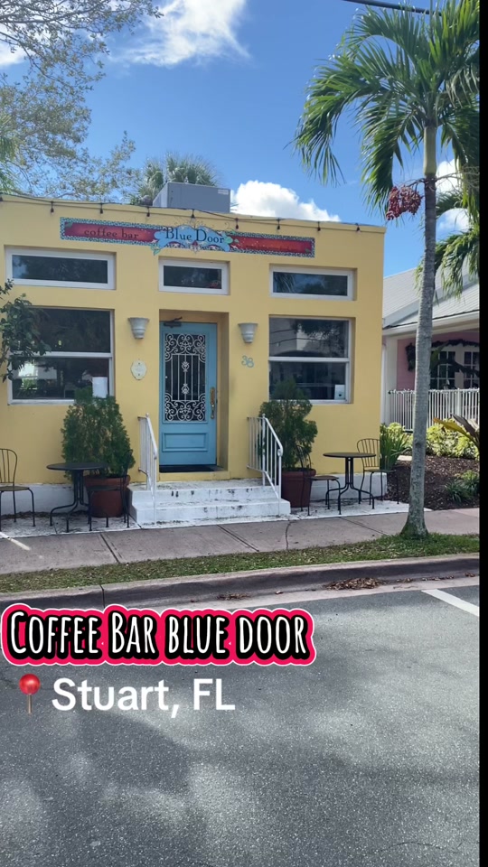 Coffee Bar Blue Door was opened in 2011 by two attorneys who missed the coffee and wine bars of Miami when they opened their practice in Stuart. They decided to pursue their passion by opening a coffee bar and infuse it with their love of different cultures. Thus Blue Door was created in a cozy building which opens onto a lovely courtyard with trees and plants. The coffee house opens at 7 AM and stays open until at least midnight giving the community of Stuart a place to gather. They serve coffee, wine, and a bistro menu. During the week they host events such as trivia, live music, and movies outside in the courtyard.