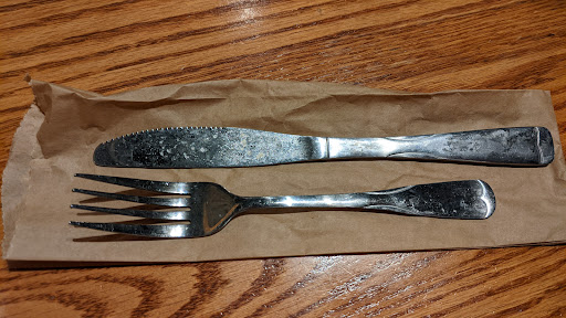 Read moreI have always loved Cracker Barrel and enjoy shopping in the gift shop, but lately my experiences there have gone down hill and have been very disappointing. My husband and I frequent the Stuart, FL location quite often and have had multiple bad experiences there. Last night we had dinner there and my husband thought it was freezing in the dining room and it was too cool. Our waiter, Peter, was very hospitable though. When he came to take our order, he brought the silverware in a brown paper bag without any napkins and when I took my silverware out of the bag, it was clearly dirty (see photo). The menu had some new items on it which were mostly appetizers and we were disappointed that my husband's favorite meal had been removed from the menu which was the Uncle Hershal's Breakfast. Another favorite has also been removed which is the Eggs in a Basket. I ordered the Maple Bacon Chicken with mashed potatoes and green beans. The mashed potatoes where luke warm to cold when our waiter brought out our food which has happened to me on many occasions here and then we had to wait while he went to get clean silverware and napkins. When he returned, he apologized for the silverware being damp and said he had to hand wash the silverware because most of it was not very clean out back. That is very disturbing! I also find it bad that our waiter was clearing tables as well as bringing people their food....a health hazard if you ask me. Due to the decline of the Cracker Barrel restaurants we have experienced in Florida and missing favorites on the menu, we will not be dining...