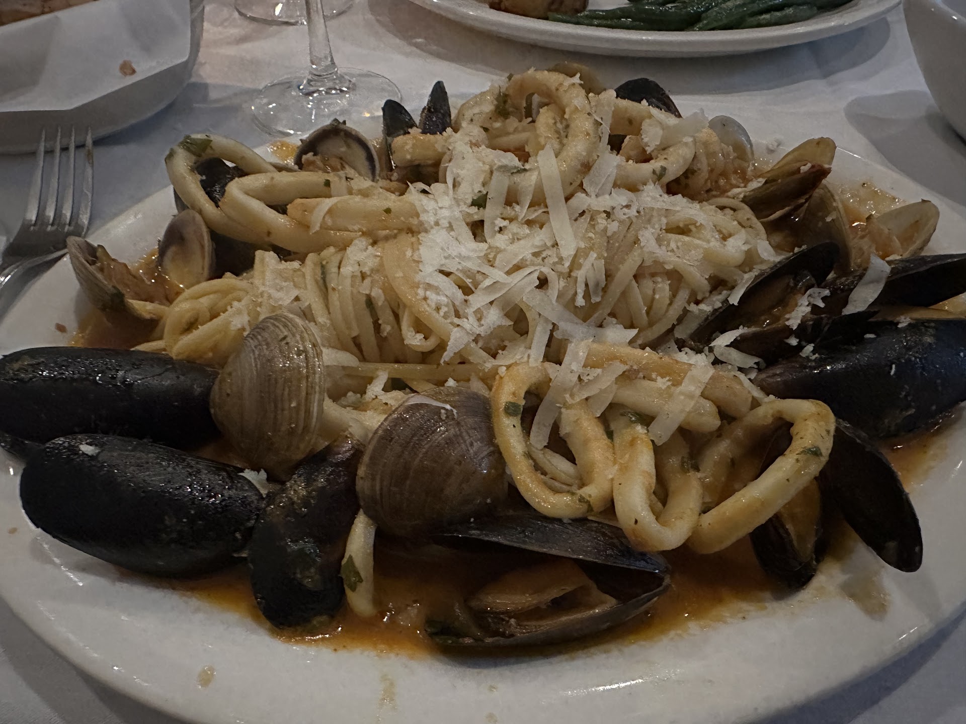 Our party ordered the branzino, lobster risotto, and the squid ink pasta (on special). The branzino was cooked perfectly but the lobster risotto struggled with flavor and the squid was very rubbery. Everything came out on time but we weren't checked on until well into the meal.