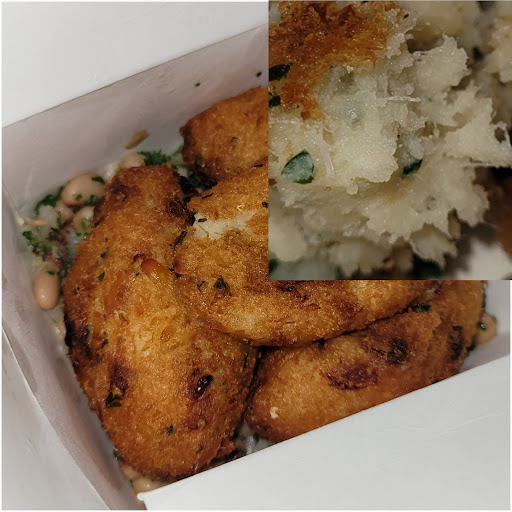 I just stopped in today on my lunch break. It was my first time trying this cafe. I ordered the cod fritters over bean salad. Everything was good, the inside of the cod fritters is a mixture of mashed potatoes with strings of cod here and there. ( be careful of cod bones, I'm sure they do their best to remove it but occasionally things happen. I had a piece in mine. Just be careful! ) I enjoyed my meal, but I just wish there was an extra layer of bean salad underneath it. It was more so just one single layer to cover the container bottom, say... I think one extra layer over that one layer would be better. But I do understand some places have to portion things a certain way for the benefit of business costs, etc. Either way, it was a good light meal. I will visit again to try more. Thank you!