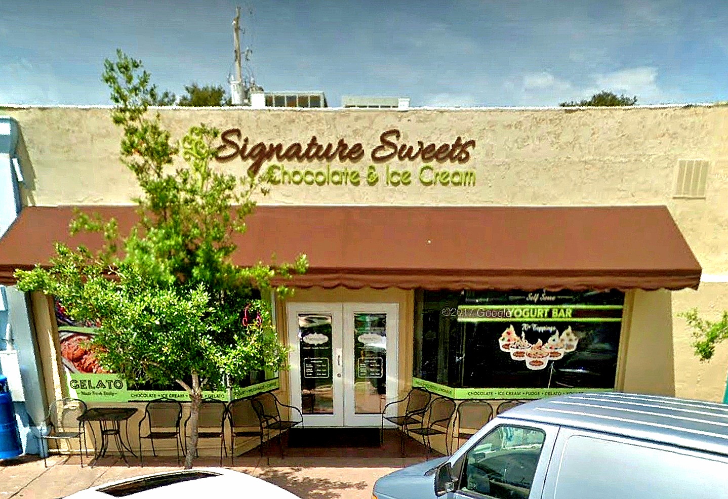 Read moreSignature Sweets Chocolate and Ice Cream is located in downtown historic Stuart on Osceola Ave. It is typical of the kind of sweets shop you expect to find in a tourist area. They sell chocolate, fudge, pretzels, ice cream, yogurt, gelato, candy apples, peanut brittle, cashew crunch, assorted chocolates, fresh squeezed lemonade, and gift items. They have a few tables to sit at in the back. Also in the back on the wall is the self serve frozen yogurt machine where you fill it, top it, weigh it, and pay for it. A Yelp check in gets you a free ice cream, yogurt, or gelato, up to $4 free.