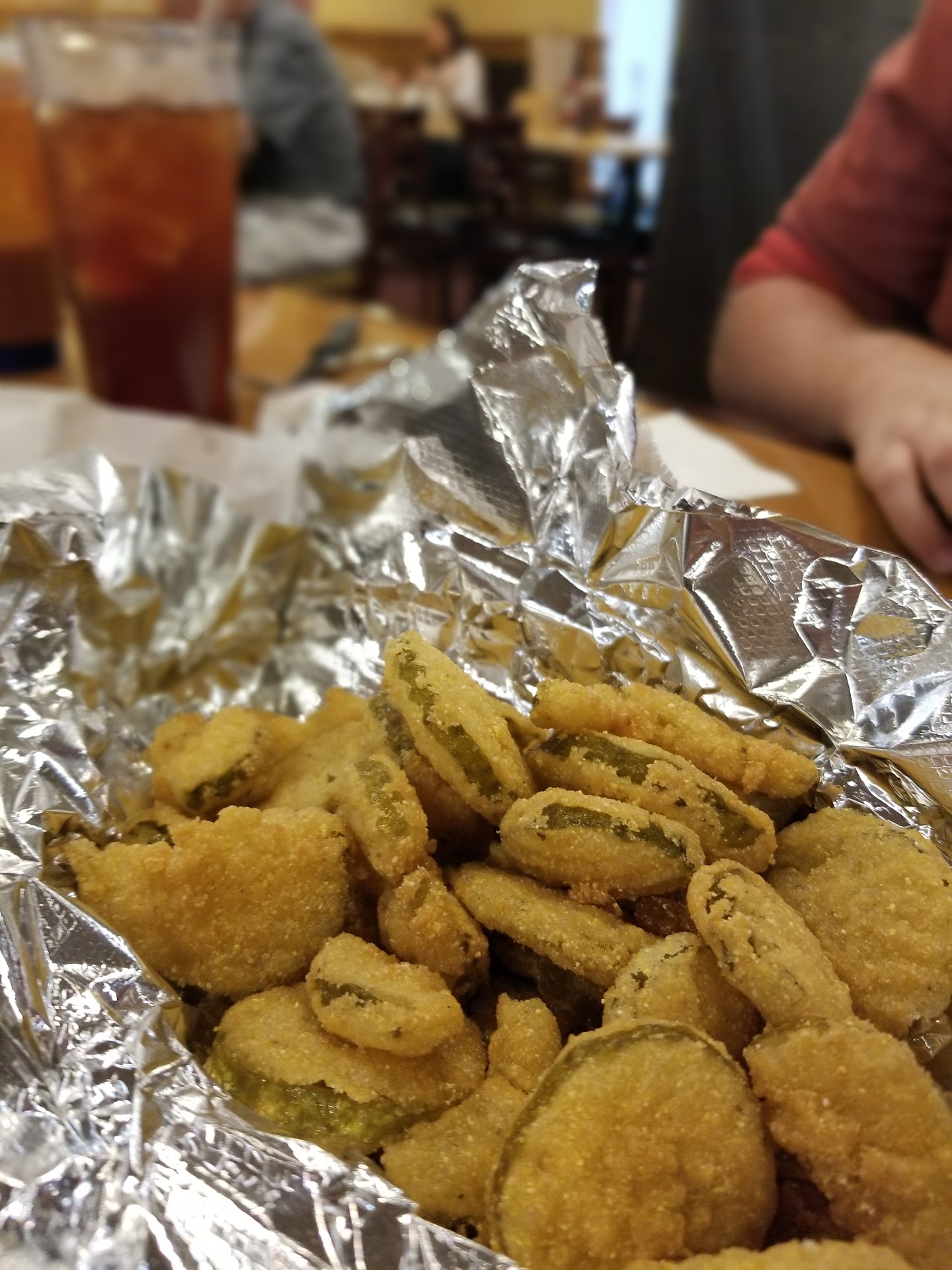Michelle T. decided it was OK rudely, drop meal baskets on the table to the point of rocking/ teetering around, having to be caught before food flew out. Selectivity only refilling one drink in our party of 8 and only bringing a box only to that same person. When I asked for a box a second time -- it was clearly obvious I needed a to-go box and as her job she should have offered rather than being asked twice but I figured maybe she got busy and forgot even though she brought one for my DIL - after the second request she grabbed a box that was on the small corner cleaning table station that was there before we arrived and the rags, broom, sweeper etc are all on or leaning on. NOT GOOD SANITATION OR FOOD SAFETY!!! I told her I would prefer a different one, please. She argued, asking me why and what my problem was with it. She stomped around the corner and turned right back around bringing the same unsanitary box. My husband took it, packed the food and we left. I threw it away outside.