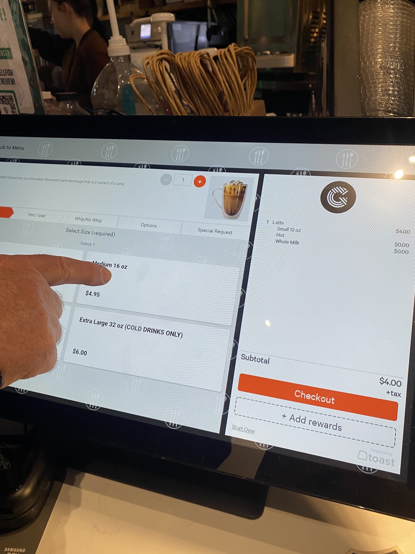 A couple came in through the other entrance and ordered at the other end. If it’s your first time I recommend ordering from the baristas. The menu is more extensive than is shown on the kiosk.