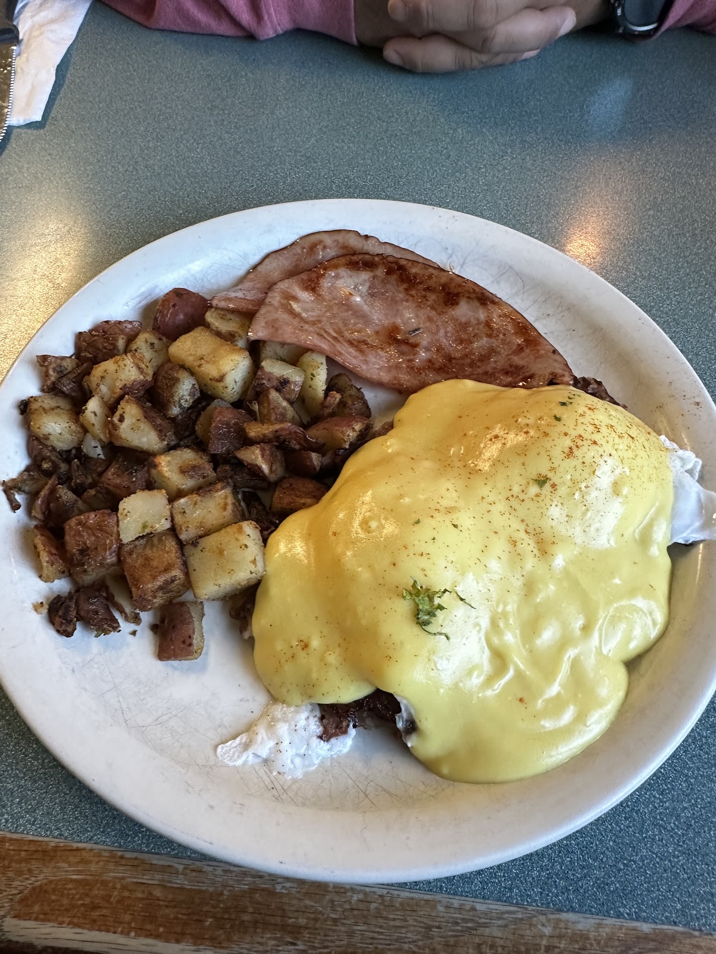 Lunch features staples like meatloaf, hamburgers, lasagna, etc. Again, all tasty and served with a smile.