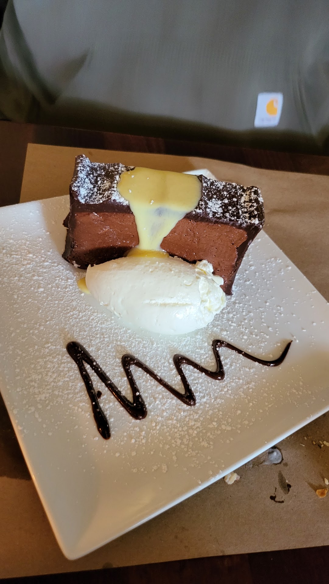 As I contemplated my next course my eyes land on the Slow Roasted Pork Shank served with Root Vegetables of Acorn Squash, Potatoes and Jicama, Tomato, Mushrooms, Demi-glacé, Creamy Polenta, Braised locally sourced Spinach all in a Tomato base rich Brown Sauce… This is a large dish so don’t fill up on bread prior. It was delicious!