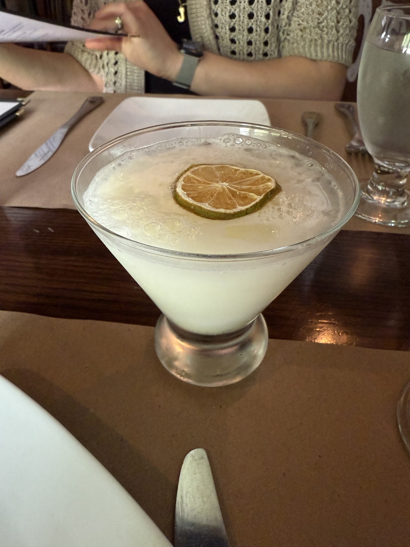 🍽️ Food & Drinks We started our meal with cocktails—each with its own standout qualities. The Coconut Key Lime Martini was perfectly balanced: not overly sweet, with just the right hint of coconut and citrus. It was refreshing and smooth. The Juliet was much more tart, likely due to the blend of citrus and bitters, making it a bolder choice for those who enjoy a punchier cocktail.