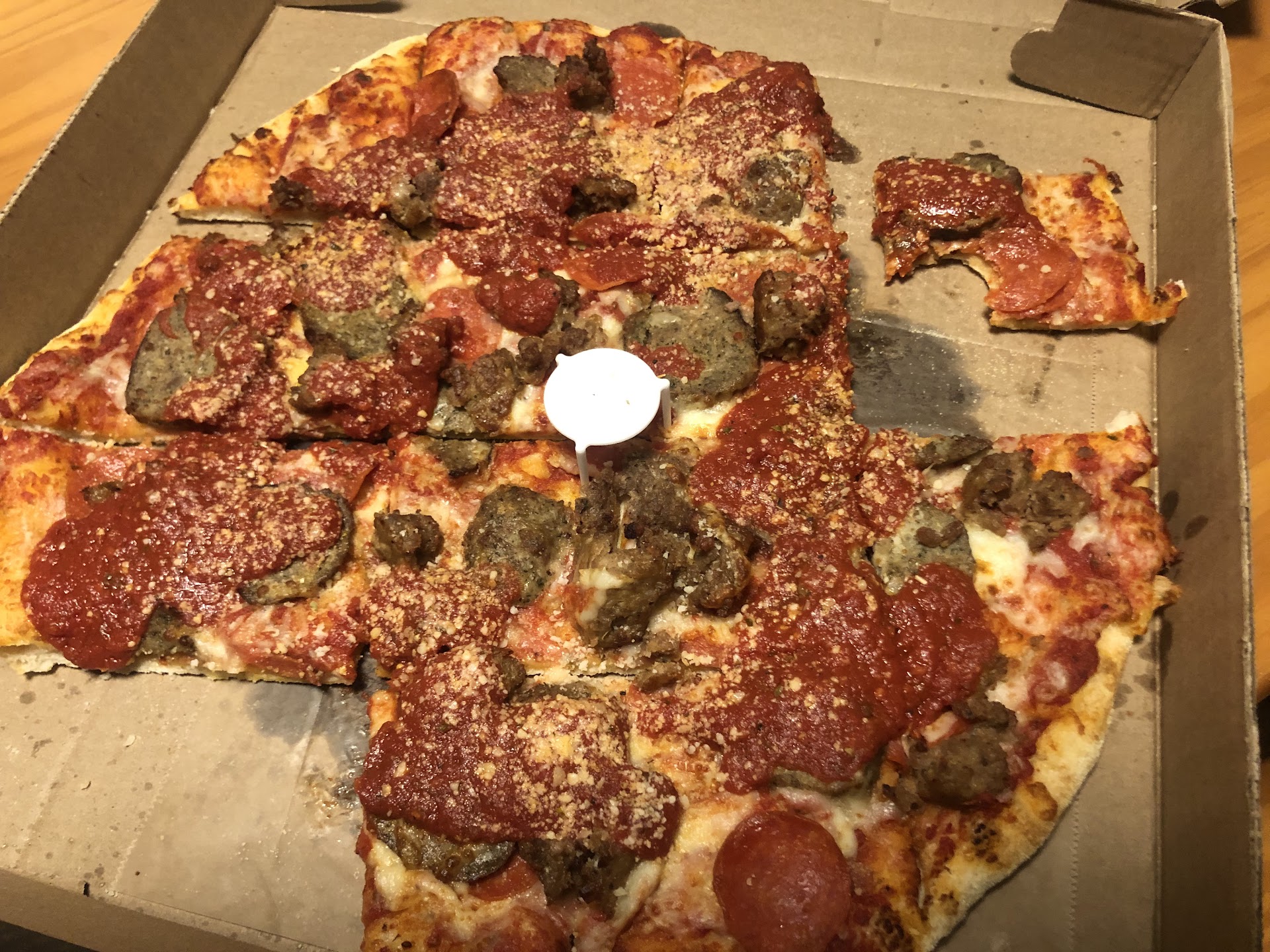 Shortly after that and my wings my pizza came out. I ordered a 10", got the personal. When questioned my waitress apologized and said she wrote it down wrong and offered to cook the proper one. I declined as I was hungry and had been in the restaurant for about 45 minutes at this point.