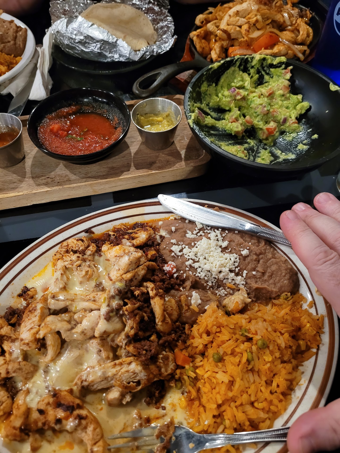 We went in, realized this was a rustic building with a fresh interior. We got a seated right away. Water, drinks, chips & salsa. Then someone came over and asked if we wanted guacamole. Yes, please!