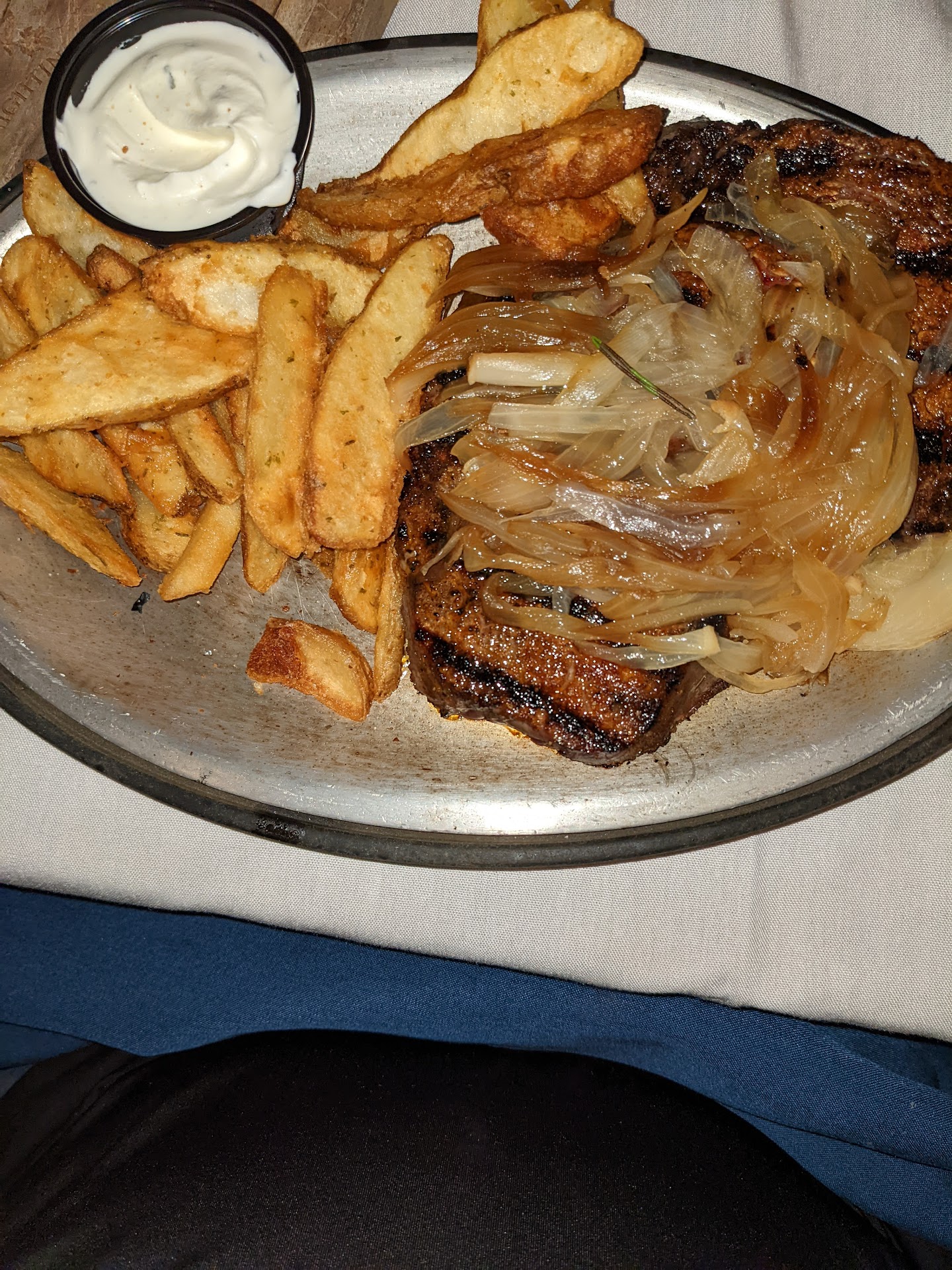 Read moreLet me just start by saying wow. My wife and I at the recommendation of the Wisconsin supper club enthusiasts Facebook page decided to celebrate our 1st wedding anniversary here. We called half an hour before open on the same day we wished to dine, and they took our reservation, no problem. We showed up 5 minutes early for our 7pm reservation, and were seated at 7:02(good start). Our server was Crystal, and she was amazing throughout the entire service. You can tell she takes pride in her job because her timing and communication were exquisite. As we were finishing our appetizer she came over and asked if we would be ok if she brought our salads right away as there was a large party and the kitchen staff didn't want to make us wait(A+). We said yes. Again, as we were finishing our salads there was Crystal with our entrees in hand. Both my wife and I have worked in the restaurant industry, but more specifically fine dining. I am normally scared to order blackened anything at a restaurant for fear that the cook will be too rushed to do it right, but wow my ribeye was a perfect medium rare and blackened to perfection. It literally melted in my mouth(my wife's ribeye was also perfect). Most restaurants don't understand how to properly trim a ribeye and leave a huge lip of fat on it. Nightingale does not. This steak was trimmed beautifully, there was just enough fat to give it that wonderful ribeye flavor, and not so much that it wasn't inedible. The only thing I can find to critique is that our prime rib nachos didn't have a cheese sauce but was melted shredded cheese. That being said they were still well made and portioned well.