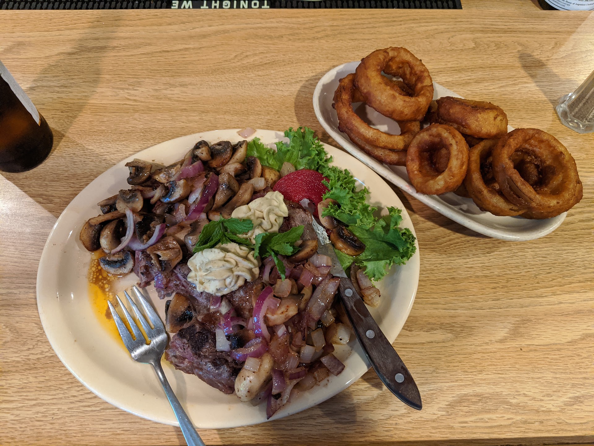 This is a nice cozy place with plenty of space. The tables are spacious with a focus on comfort rather then people craming which is a nice change up from the usual crowded dinning which is typical of most door county dinning establishments. The bar is retivliy small accommodating only abot 7 people. Despite its small size it boasts a impressive liquor selection as well as some craft beers. There is a small salad bar which is a little underwhelming but it would satisfy the basics.The crowd seems to be a mix of older and middle aged groups of 4-6 people. The menu has a generous amount of options that that seem like elevated takes on alot of door county favorites. So tonight I'm trying the half naked cheese curds, jumbo smoked wings in the pablono cherry BBQ sauce, the home made sea food chowder, and the cod dinner plate. The appetizers where amazing. The cheese curds where very good and the magic sauce was a real hit. The smoked jumbo wings where huge, but so juicy and savory. The pablono cherry BBQ sauce was a interesting twist that went well with the smokiness of the wings.The seafood chowder was spot on with a creamy rich base and great flavor, it honesty left me wanting more. The cod dinner was done simple but exceptionally well. Two large pieces of cod with a thin and crispy beer battering. My final thoughts, samuelson's is a nice cozy restaurant that offers...