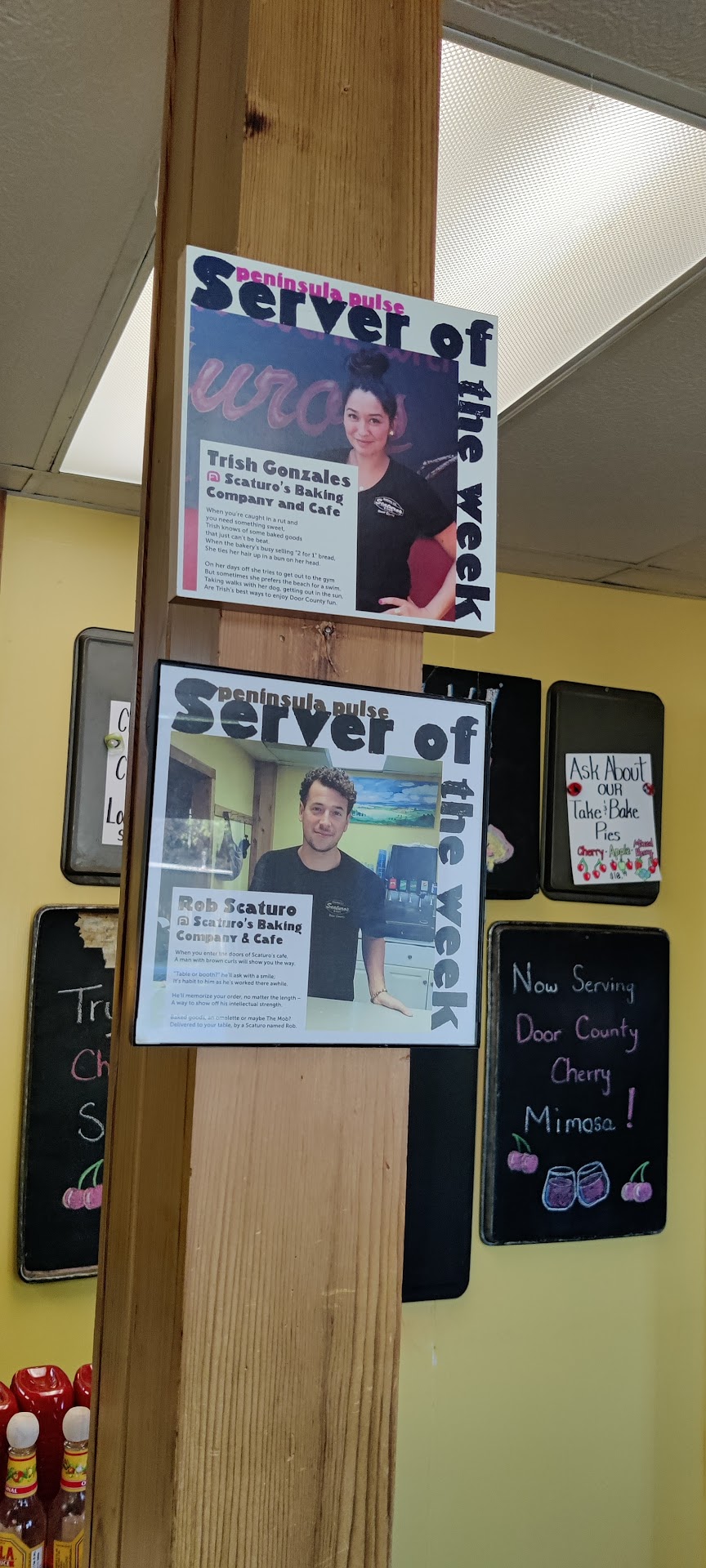 Ā Ā Ā Read moreAmazing vegetarian options. The atmosphere is amazing. All of the staff are very kind and friendly. The baked goods we have yet to try - but the fact that they fresh bake the rolls they make the sandwiches with - it reflects well. Delicious and worth the experience. Good to note: breakfast ends at noon, and lunch starts at 11 (weekdays). No exceptions! Weāre going back for breakfast tomorrow for sure! *try their sangrias - tasty!!! Update: baked goods are SO GOOD. When youāre in Door County you have to get cherry pie, and let me tell you - their pie is the BEST PIE I have EVER had. Fresh out of the oven, still hot, let it cool of course. I would never think to call a pie decadent, but man, this pie⦠amazing. Suggest pairing it with a little scoop of vanilla ice cream. As mentioned before we wanted to go back for breakfast, and am I so glad we did. I had the thick cut French toast topped with cherries (of course), came with a little bit of whipped cream and side of maple syrup, yum. S.O. Got the farmers skillet which he stated was delicious. We shared the cheesy hash browns and they were just like my grandma makes āem. With lots of love and lots of cheese. Itās amazing to have a bakery make fresh bread, fresh items daily, and use those items in their menu. We will be back! If youāre in the area and you need a quick snack, a hearty meal or a delicious dessert- I highly recommend...