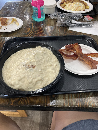 So creepy that you watch security footage of people after they leave a bad review and use it as "proof" that people ate the food. No one finished any of their food prior to the condecending interaction, we all were already very put off by the food. The French toast was burnt, the pancakes were over done, the crossant sandwich fell into peices, the gravy for the biscuits was the worst I have ever had and my biscuit wasn't even warmed up and was definitely stale or over baked. But I would never have put a bad review just for bad food I just didn't plan on returning. My daughters spinach wrap was delicious it was the only thing edible that I tried. Also I wasn't aware that my elderly cancer ridden mother who can't even walk unassisted baked me a cake to surprise me to eat LATER in the day it wasn't even on our table or near any of us. We were about to leave we clearly weren't eating it. It was 9:30 in the morning and it was sitting with the other presents my mother had brought me. The owner waited until we were about to leave to say something about it like she just couldn't allow us to leave without being rude. I didn't even know you guys made cakes and no one knew my mother would bring one. We never even took the lid off. And as we were about to leave that's when we were told how rude it was to bring in a cake. 🤣 So yes after that interaction I said nope we're leaving I imagine that's why our table was left a mess because we left abruptly. Also we didn't realize we were supposed to bus...
