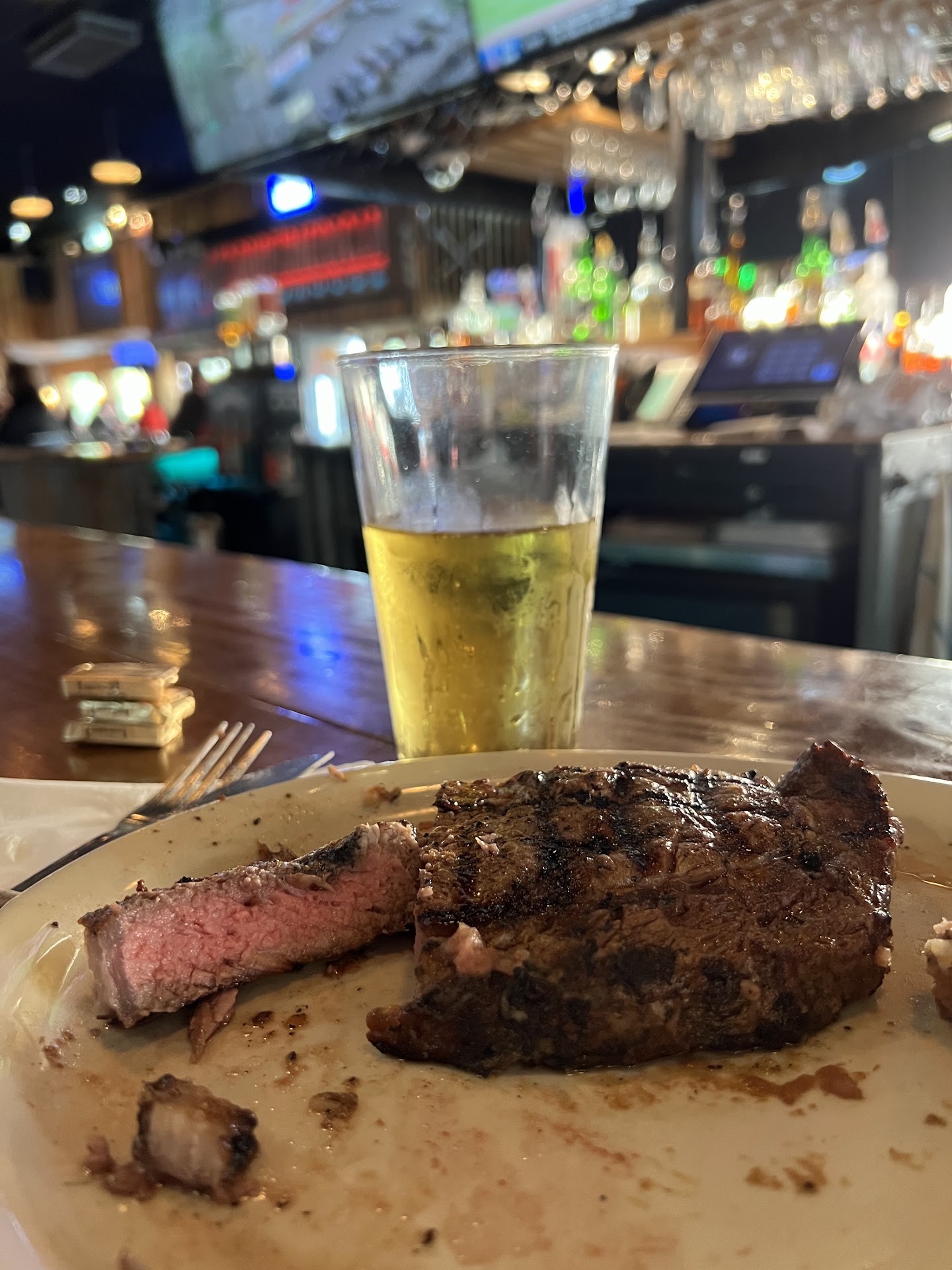 Then the waitress comes back after we're done to clear things, didn't ask how it was or if we needed anything else. Nothing. She just grabbed dishes n walked off. Then came back w the check n tried charging me for the soup and salad we never received! I went to the bar and at least the lady behind there was nice about it and apologized (even thought she didn't do it) and removed those charges. I thought spending $55 on a meal would garner better service than that. I usually tip around $10 for a meal like that, but felt so disrespected that I didn't leave anything. Too overpriced for subpar food n terrible service. I honestly will never take my family there again n will not recommend this place for a sit down meal to anyone.