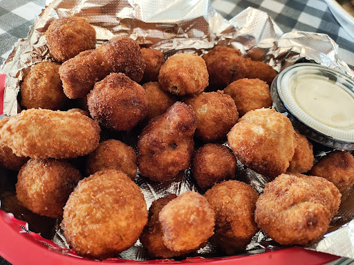 The food was delicious. Actually still is as I am having my leftovers right now for lunch! My friend and I each ordered a calzone, and I added breaded mushrooms as a side to mine. Mine was sausage, pepperoni, and black olives. What I love about calzones is that they do not have the sauce inside, rather it is served as a dip. Too many pizza places use WAY too much sauce and drown the flavor of everything else. Not to mention the acidity often causes heartburn. I get it. You're proud of your sauce. And you should be. But the calzone lets you have the delicious pizza, but control the amount of sauce to your own liking. The mushrooms were done perfect. Very crunchy but not overdone. Excellent.