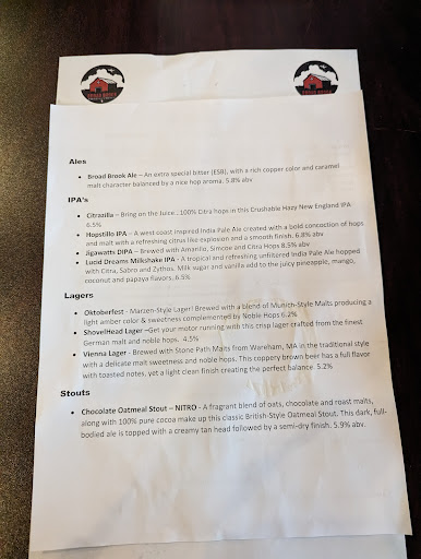 ย ย ย Read moreBroad Brook Brewing Company is about 10 minutes off the interstate, and it's absolutely worth a little detour. At first, it feels like you're going to be nestled in among a bunch of warehouses, but the establishment sits on its own lot, and the outdoor seating overlooks a great little green space. Bonus that the planes from Bradley International Airport provide some entertainment every 10-15 minutes or so. There's plenty of room inside this spacious brewery, a nice sized bar, and a bunch of tables. We were greeted by friendly staff members and were seated right away on a beautiful Saturday afternoon. Plenty of great selections are on tap, and their food is very good too (we had pizza, which was awesome). On our way out, we grabbed some beers to go as well. I'd highly spending some time here, it's...