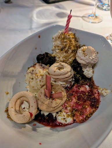 For dessert, I decided to venture outside of my preferred choice (creme brulee) and ordered the pavlova. This was probably the only disappointing dish of the evening. Presentation-wise, it was more of an Eton mess than a pavlova and it had way more whipped cream and other components (nuts & fruit) than the meringue (only three small circles). For $13, I expected a dish that delivered more "wow," visually and gastronomically.